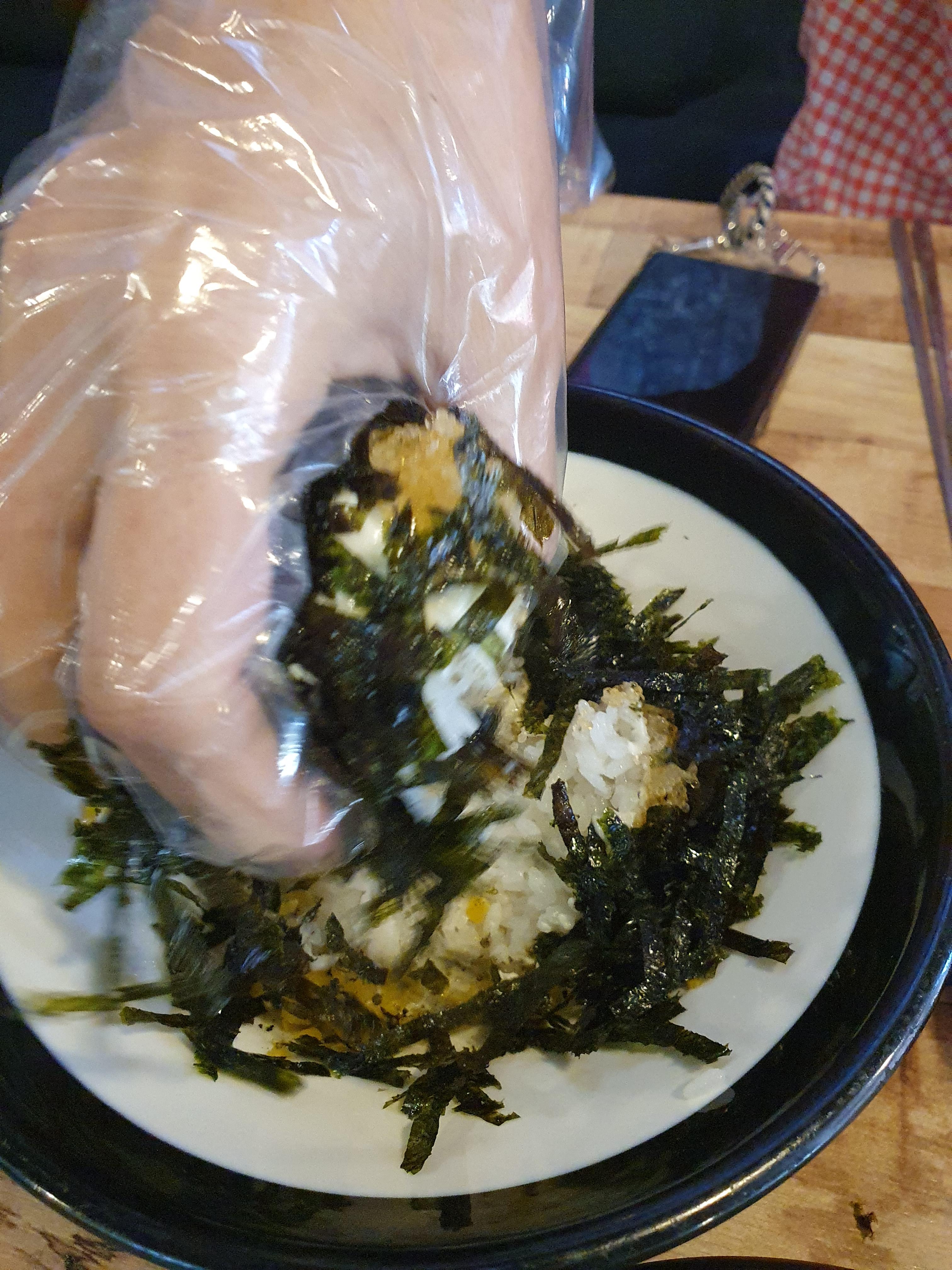 주먹밥은 마요네즈랑 김가루가 들어가서 직접 만들어 먹습니다. 맛있고 촉촉해서 맛이 좋습니다.