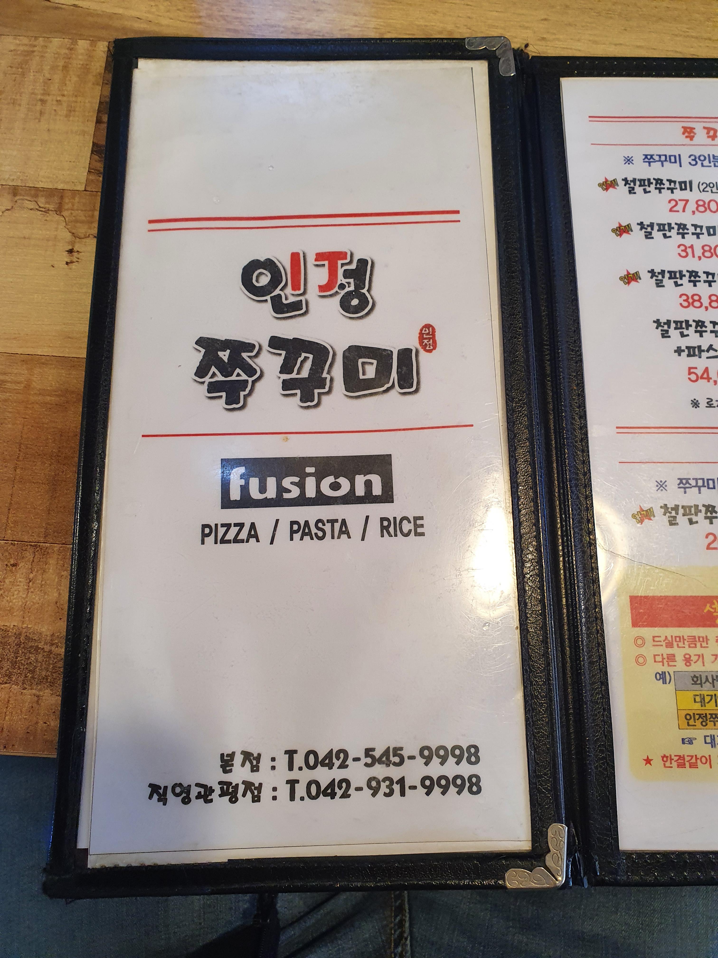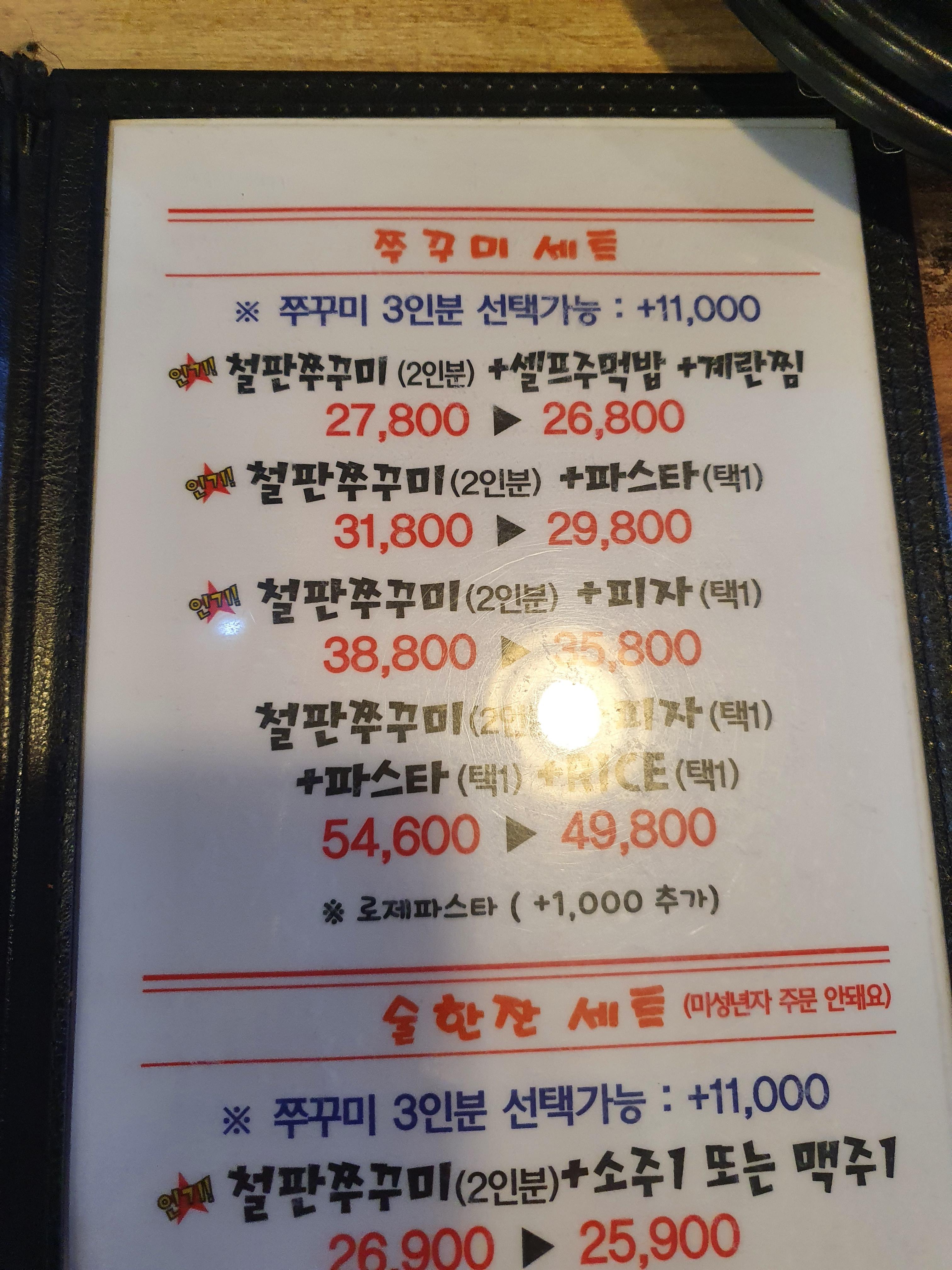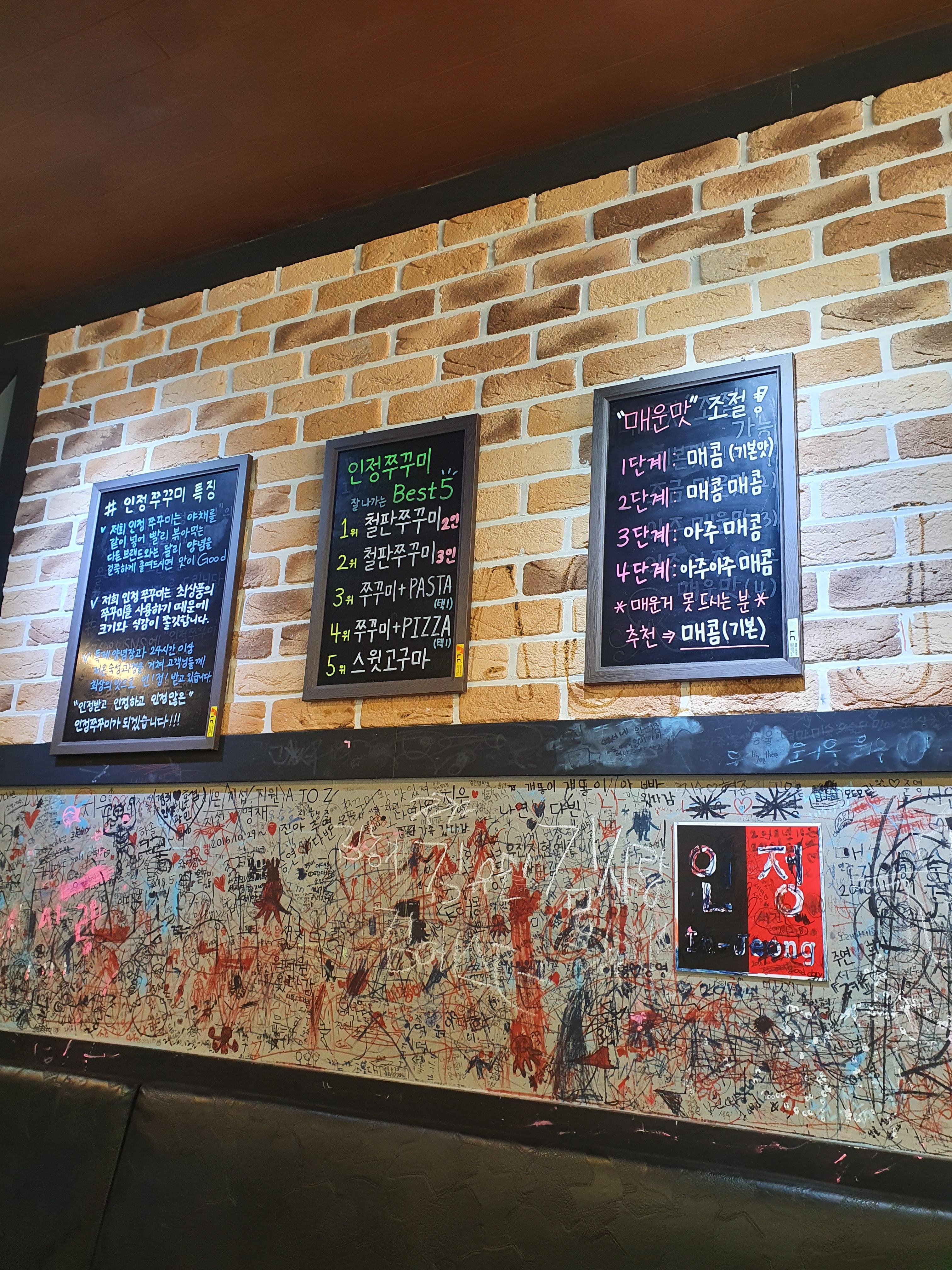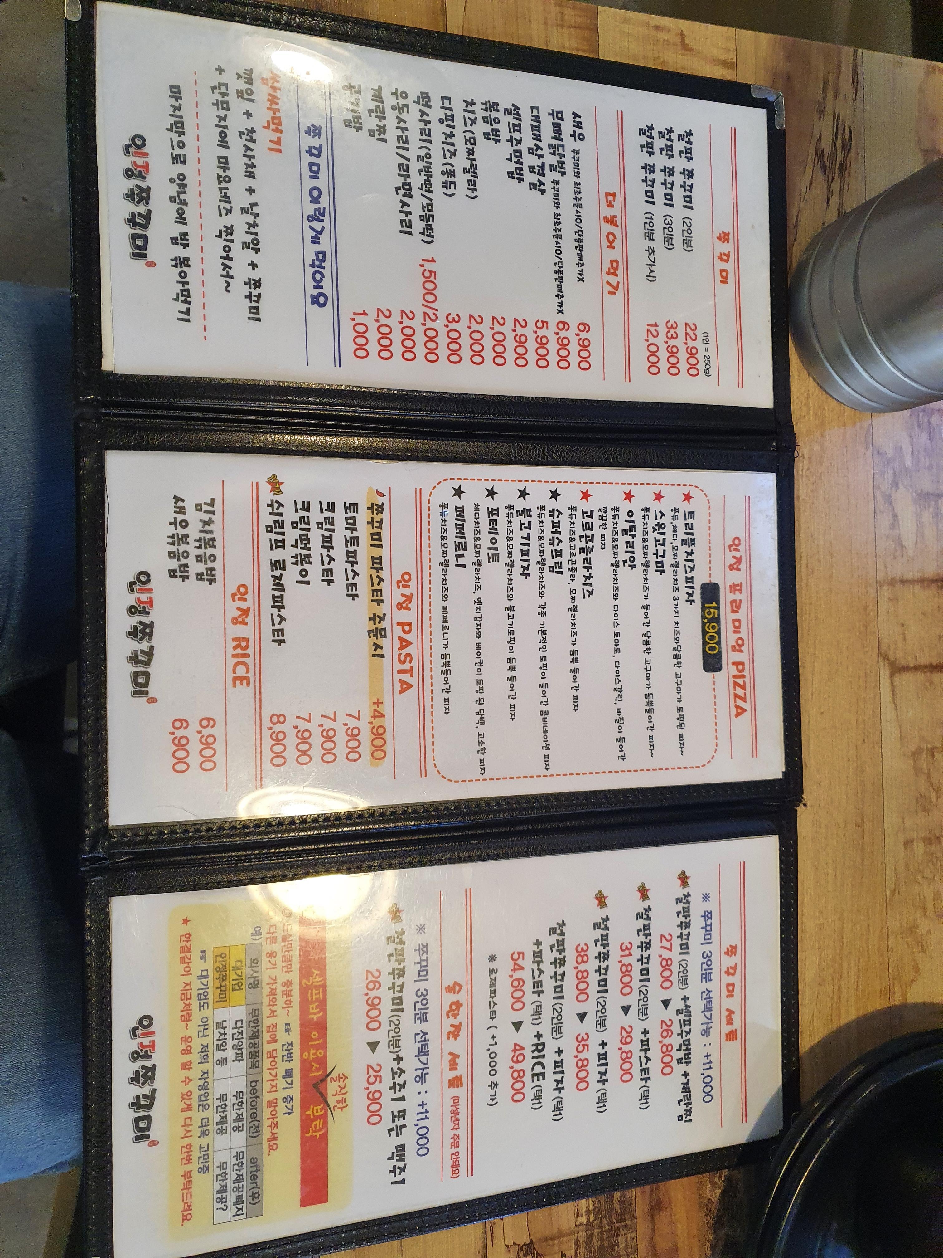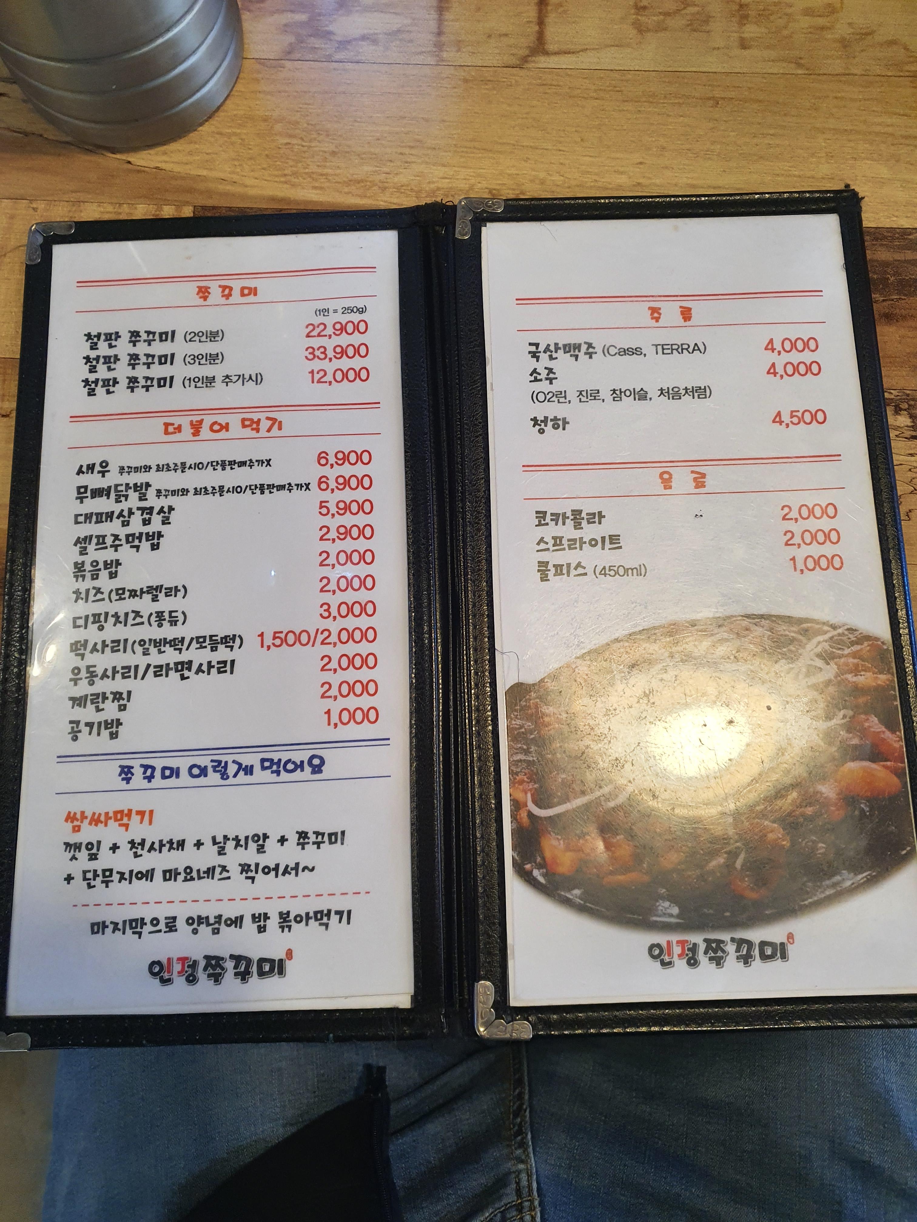 관저동 인정쭈꾸미 메뉴판을 보면