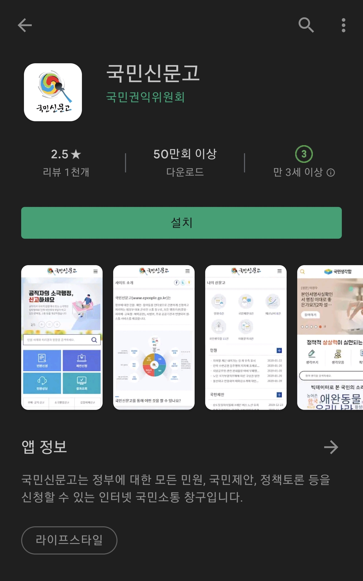 국민신문고 앱을 통해사용 하시면 됩니다.