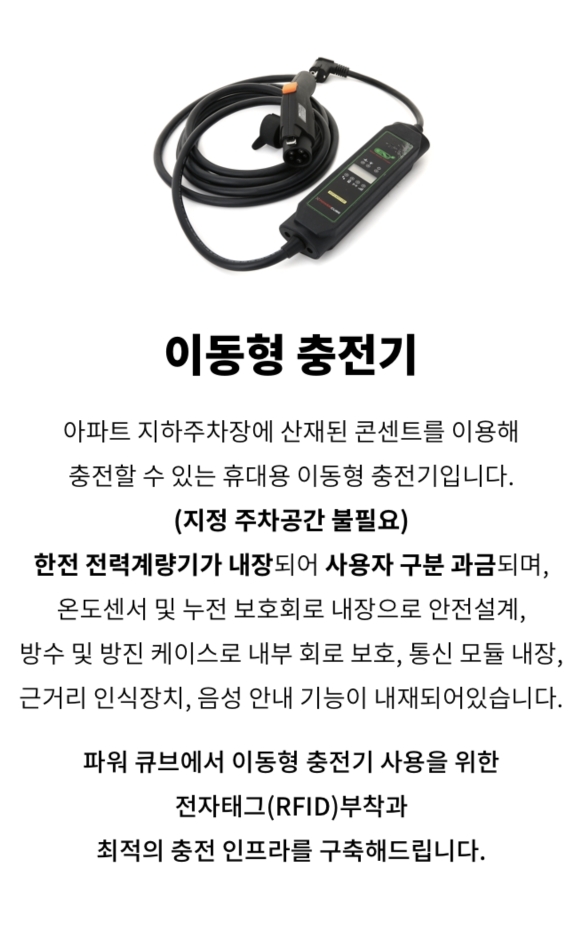 파워큐브 코리아의 파워큐브 이동형 충전기는 아래 사진 처럼 생겼습니다.