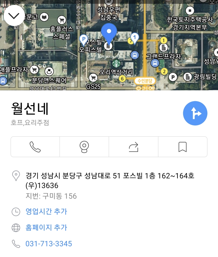 주소 경기 성남시 분당구 성남대로 51 포스빌 1층 163호