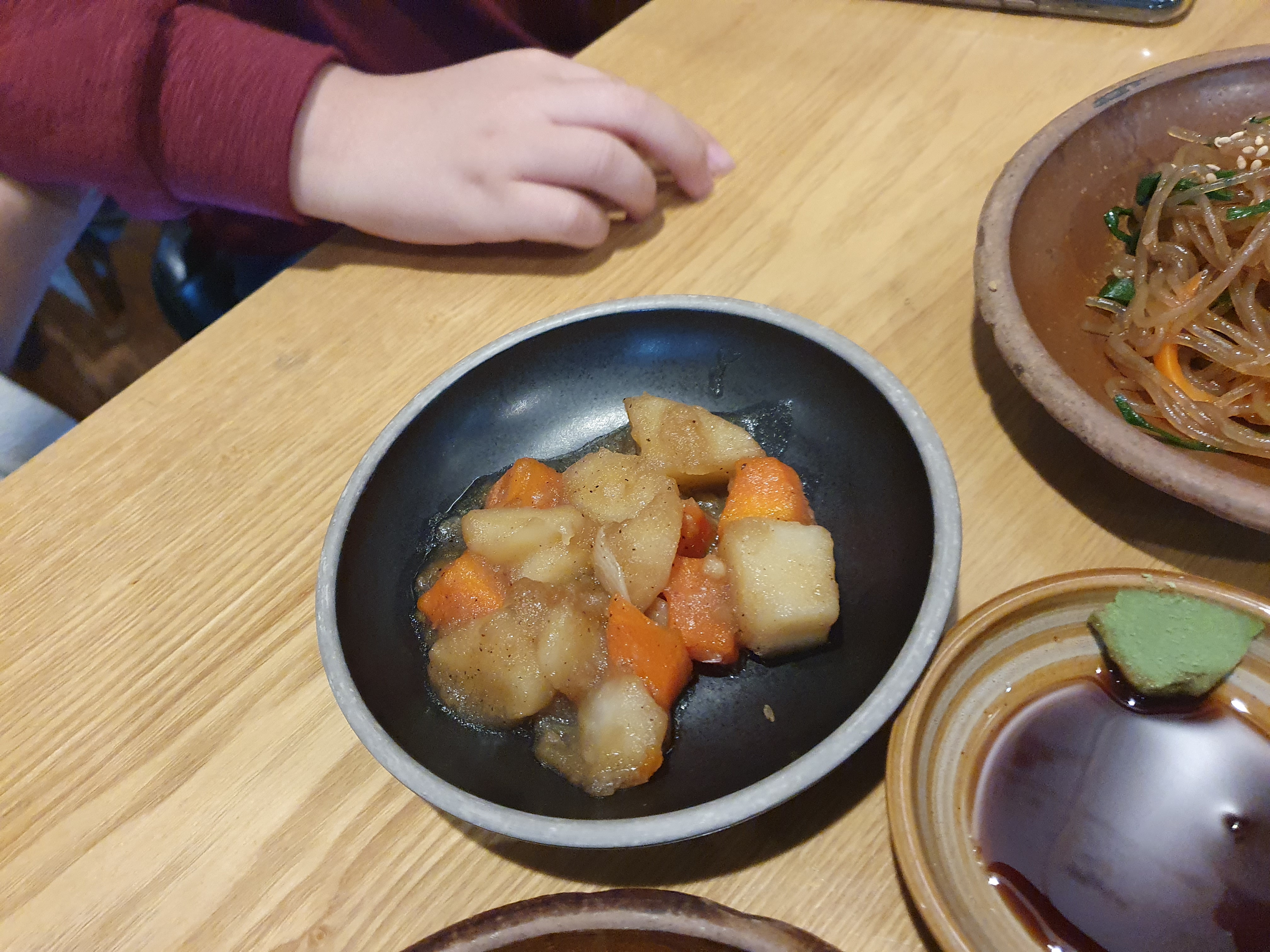 바로 밑반찬이 세팅 됩니다 김치전이 샐러드바 무한 리필로 제공되기 때문에 맛이 없을 거란 생각을 했었지만 실제 먹어보니 왜 이렇게 맛있어요?!