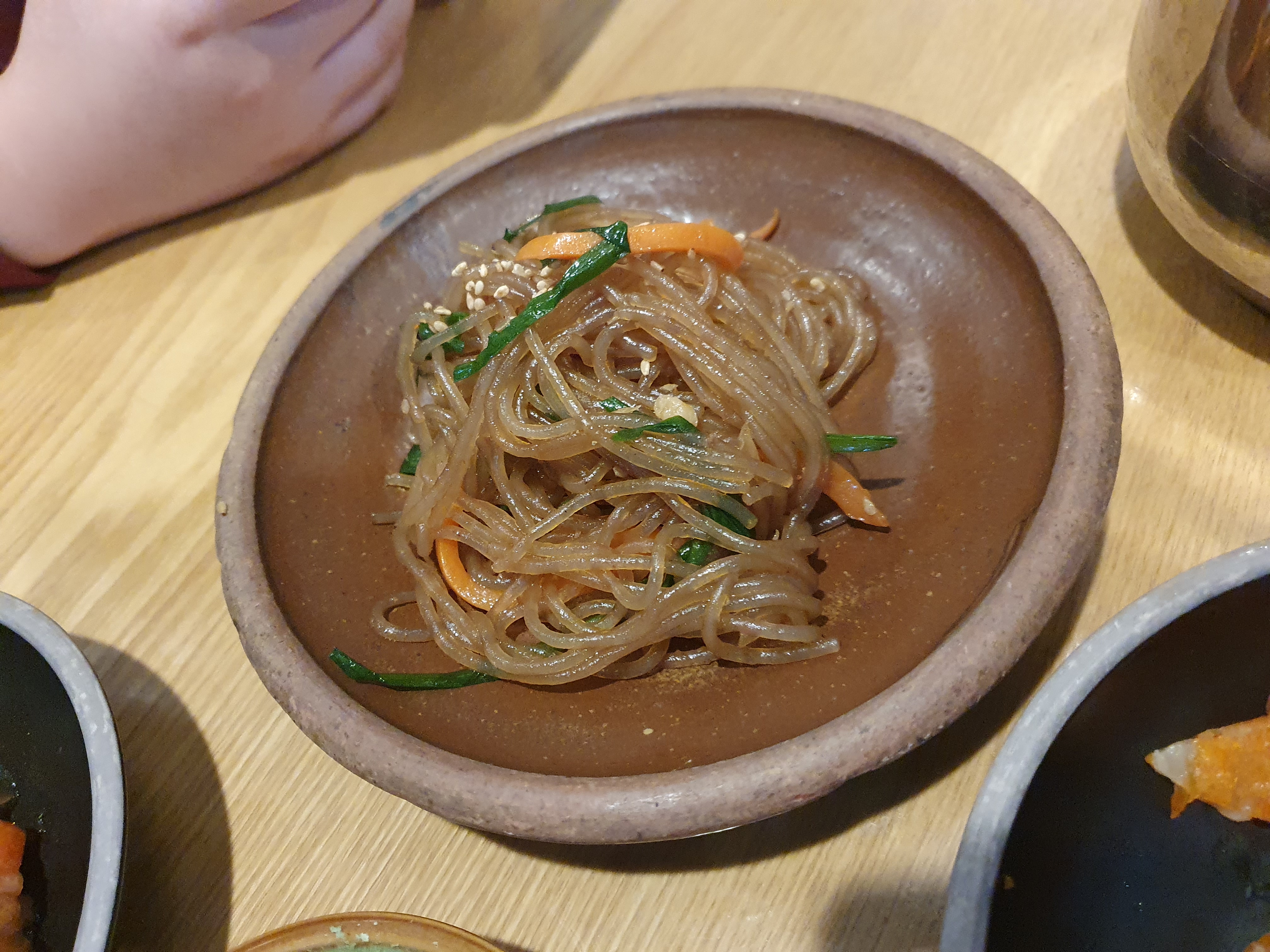 김치전, 잡채, 배추겉절이 김치가 놓여 있어서..