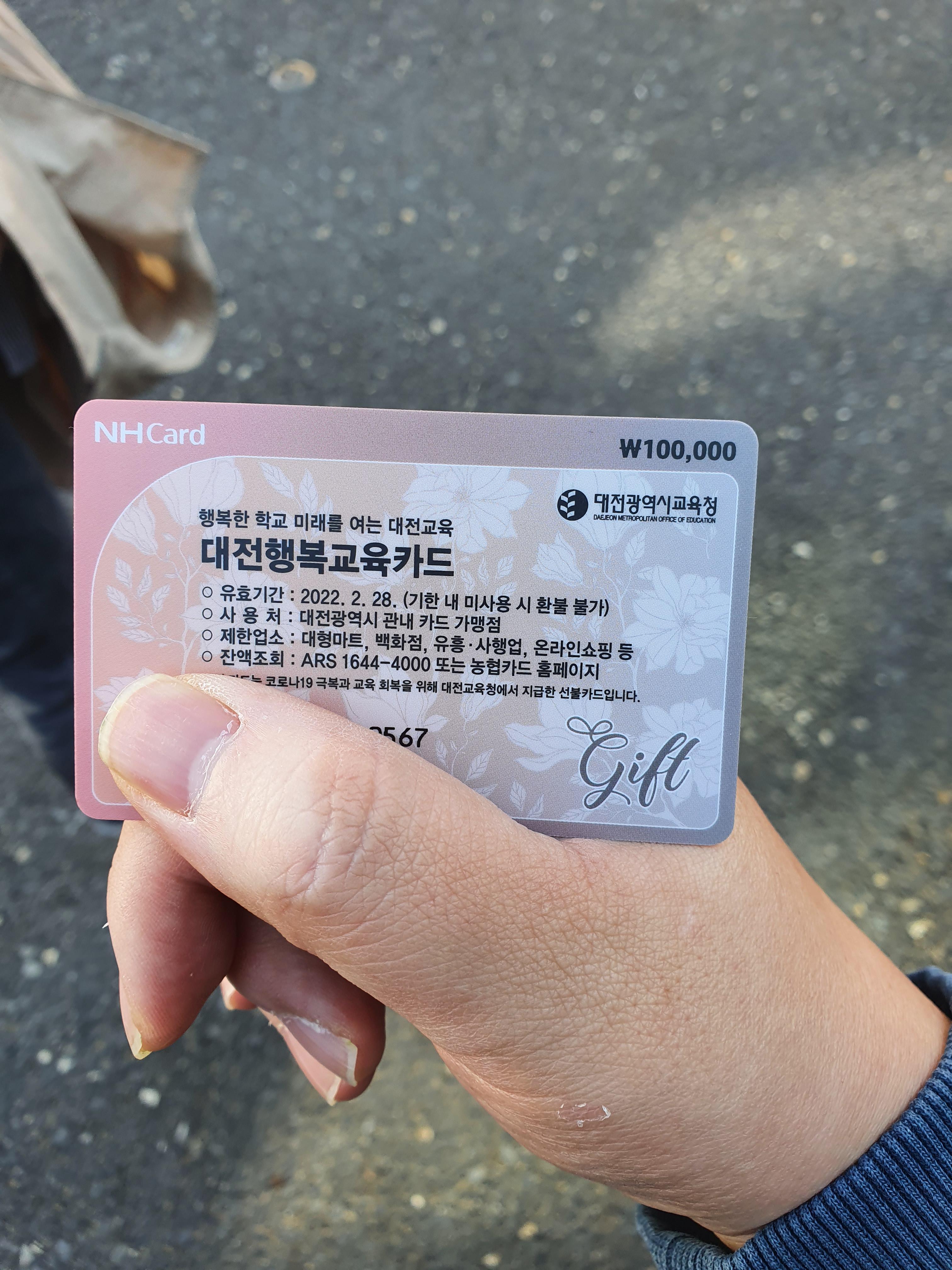 대전시 교육청에서 대전행복교육카드를 발급해줬습니다.