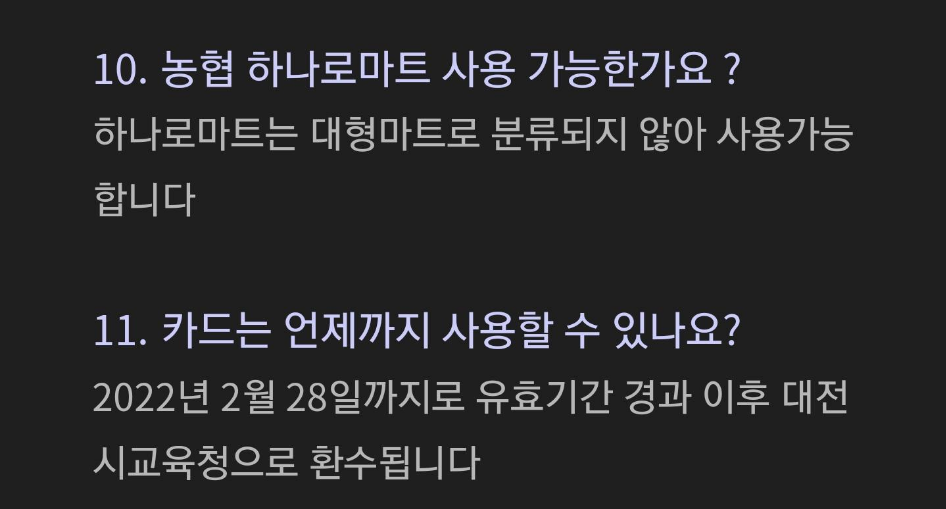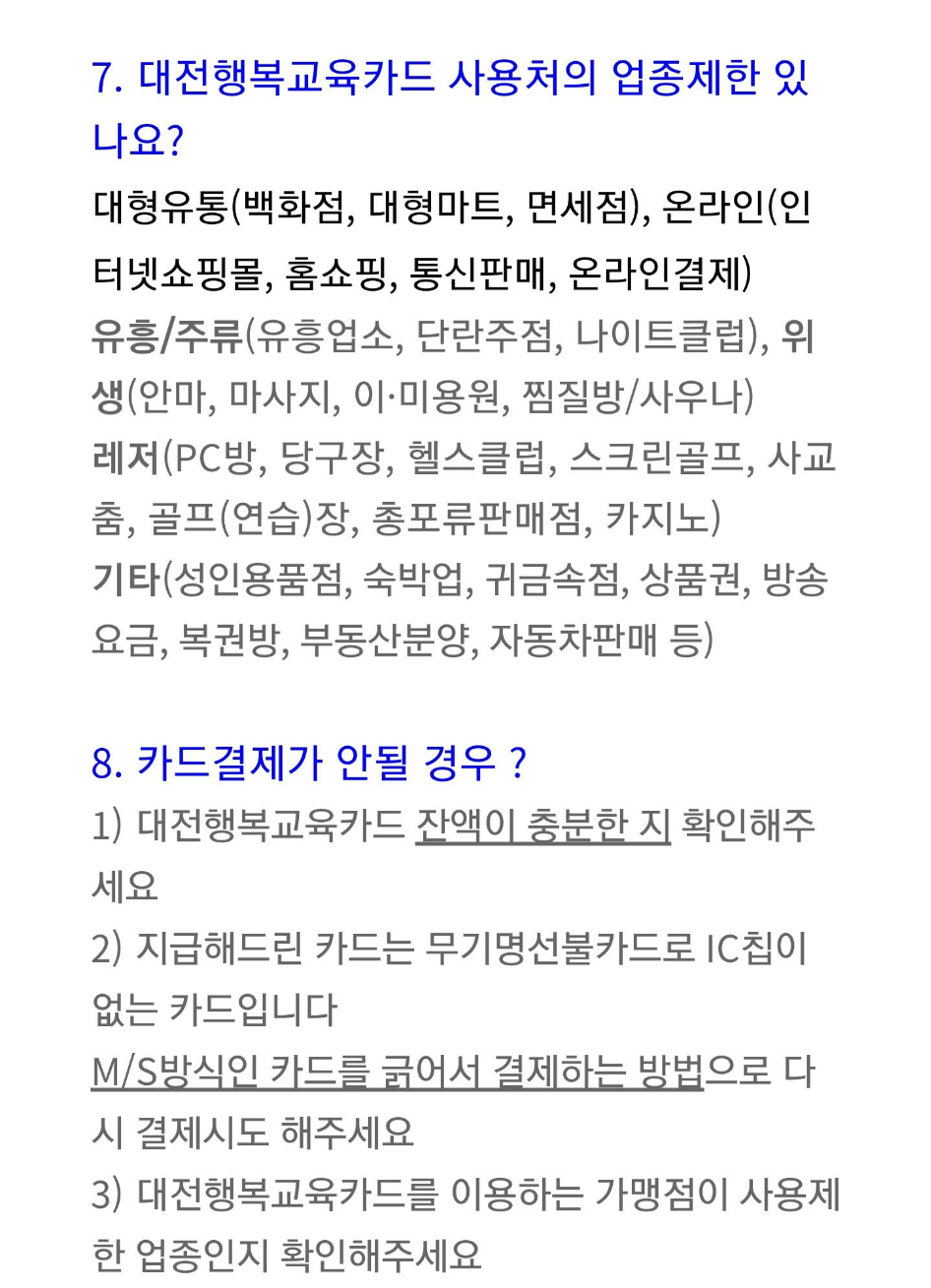 1. 대전행복교육카드의 사용처