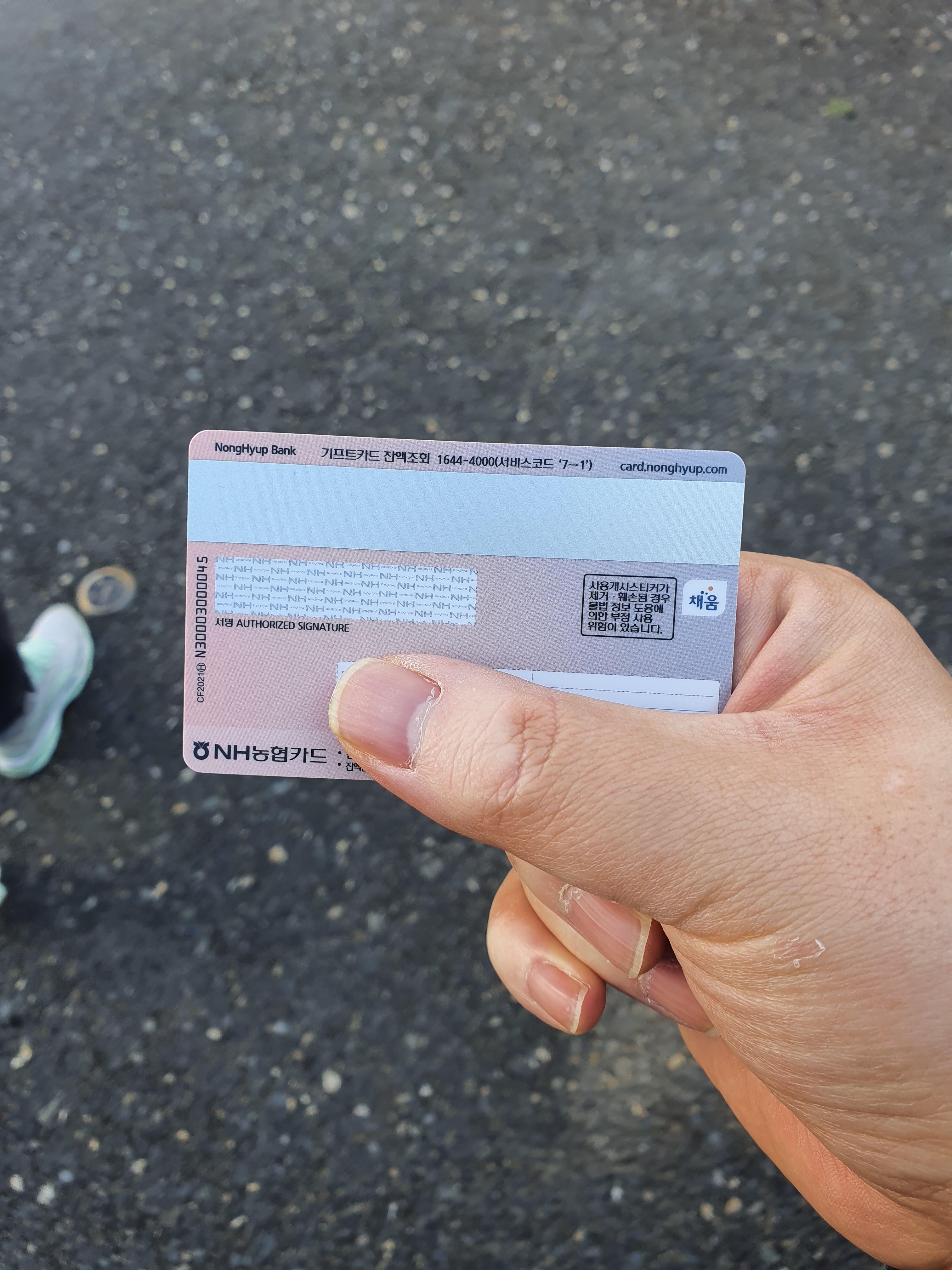 카드의 종류는 NH농협 기프트카드로 나옵니다.