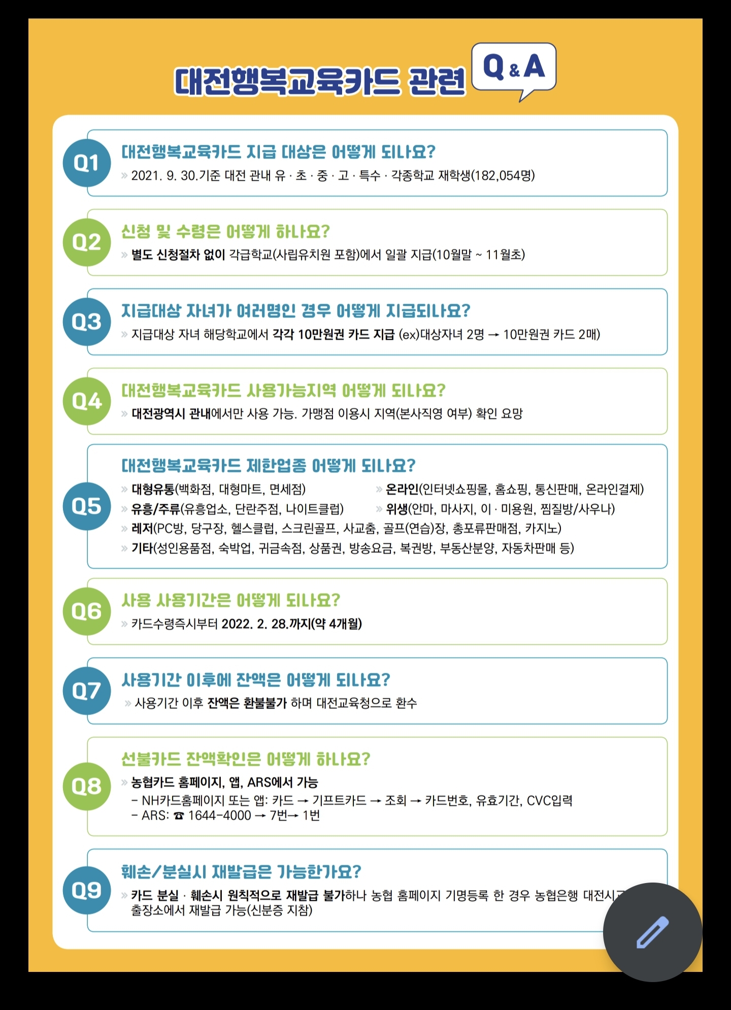 보다 자세하게 대전행복교육카드에 관해 궁금하신 점이 있다면 아래