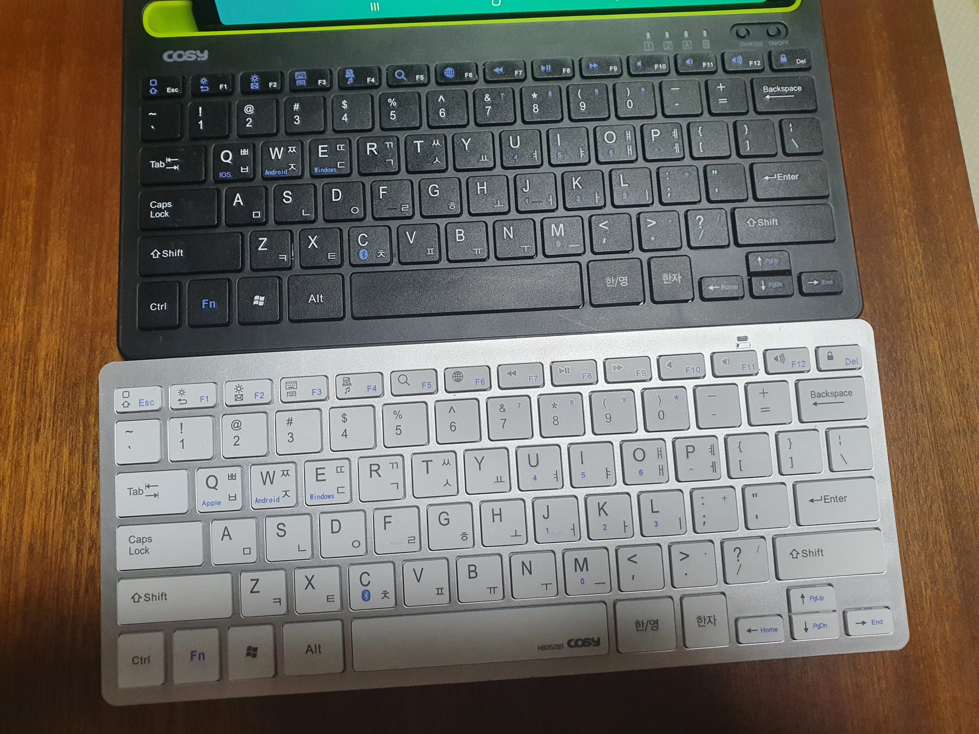 기존에 제가 사용하던 코지 블루투스 키보드 KB1352BT라는 모델과 비교사진을 찍어봤습니다.