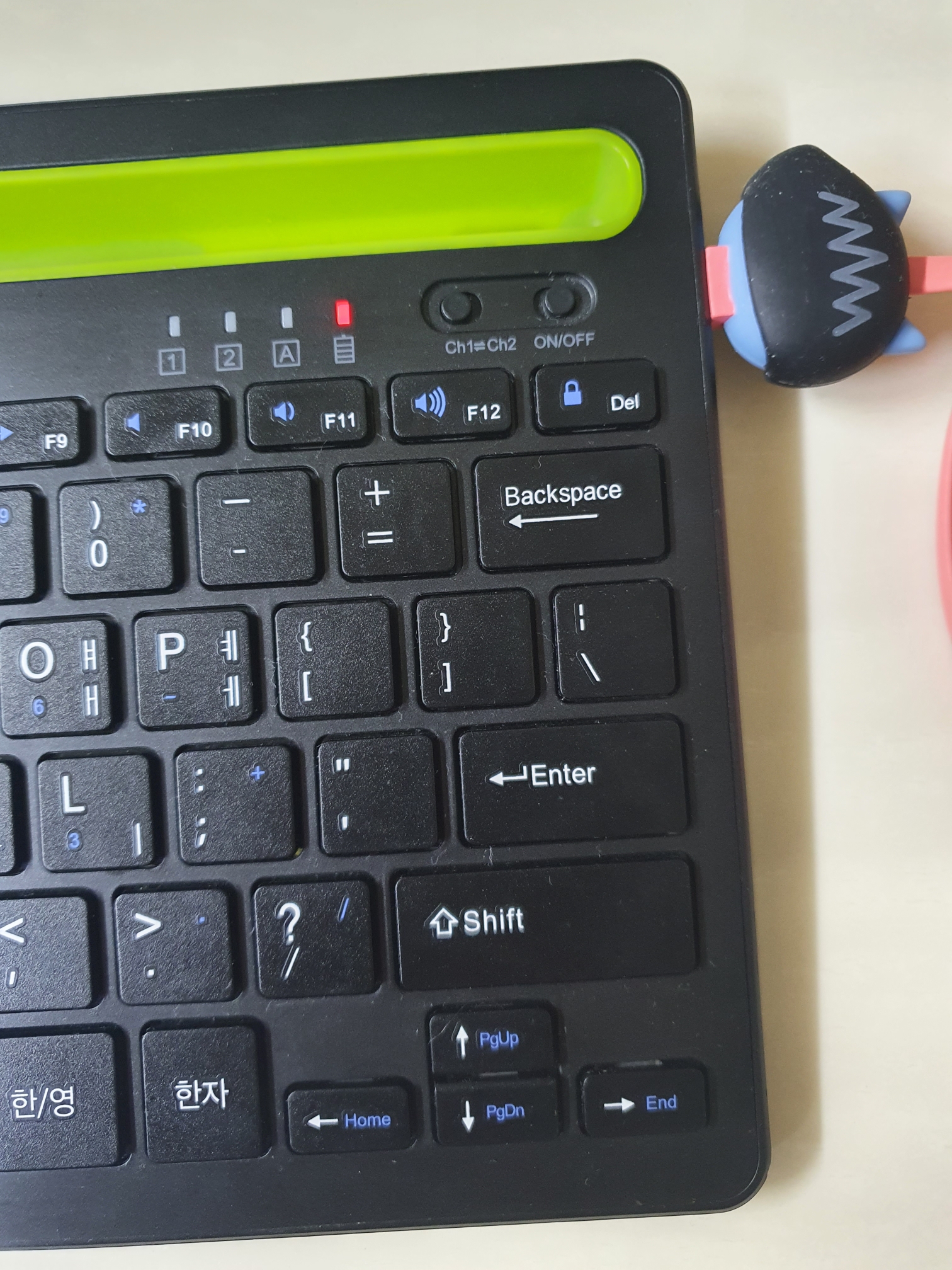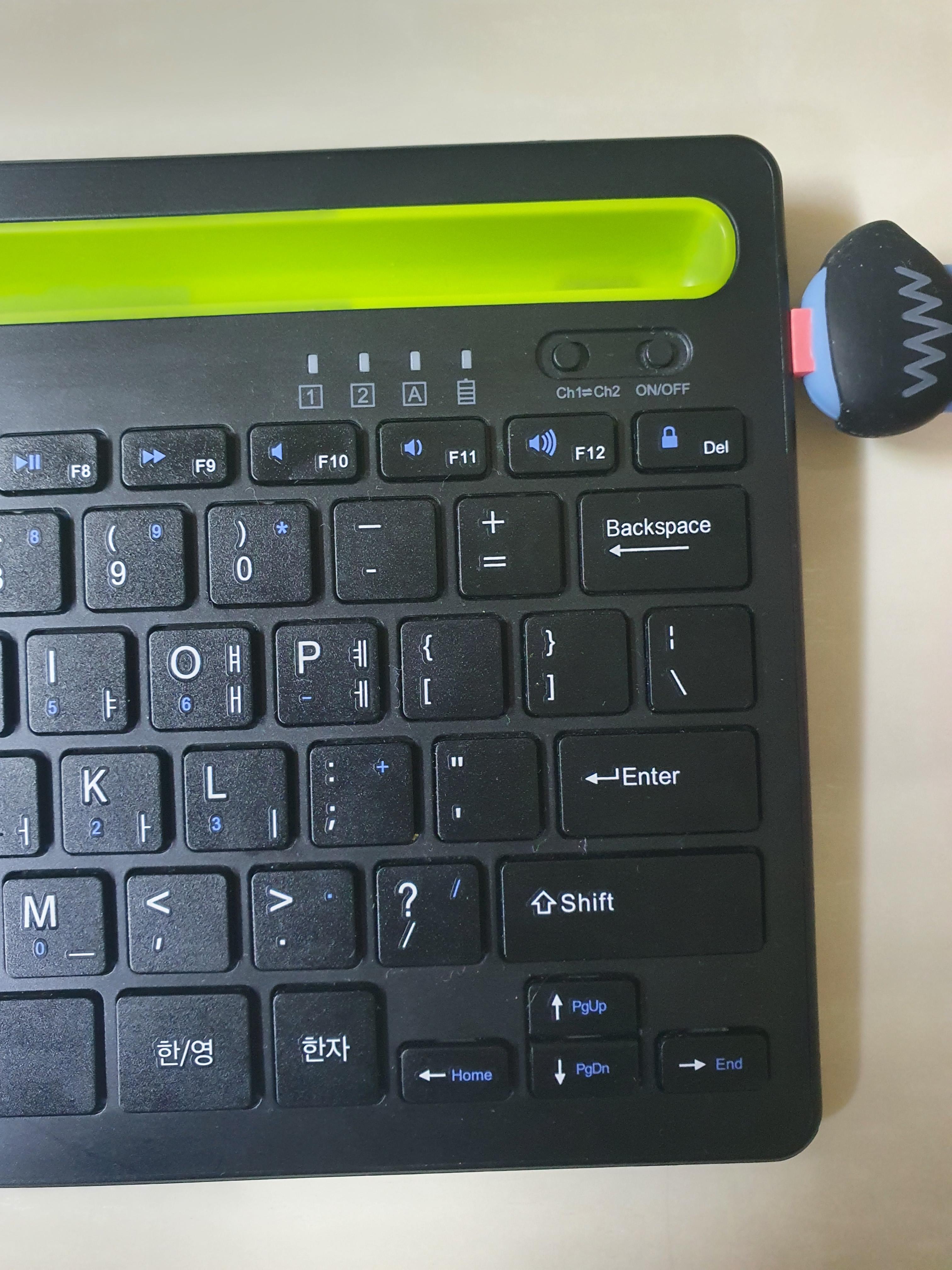 키보드 상단에 있는 채널 전환 버튼을 이용하셔서 편리하게 사용을 하시면 됩니다.