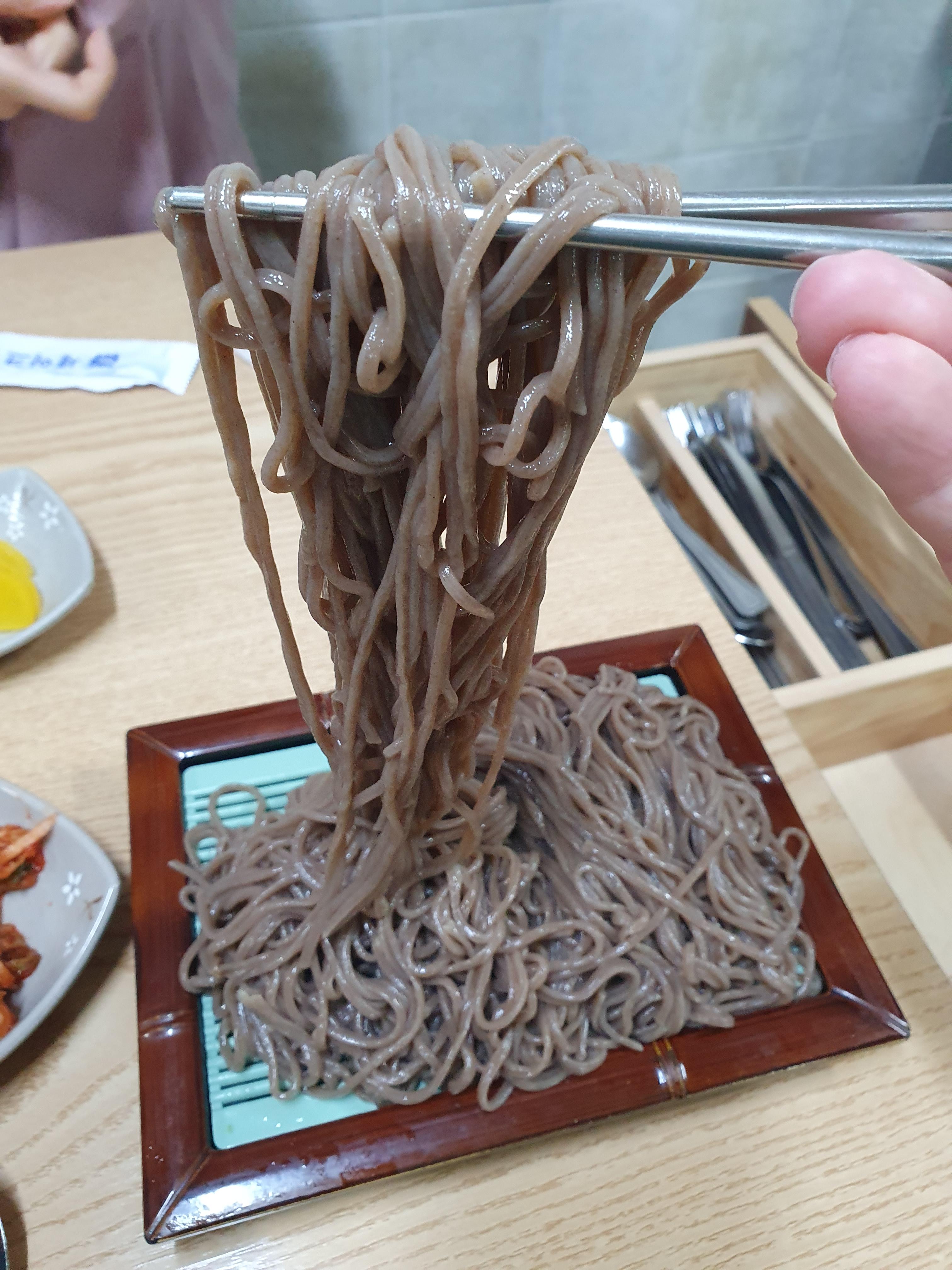 모밀 국수에 들어가는 메밀 소변의 양이 장난이 아니긴 합니다 보통 소바 집에 피하면 곱빼기 정도로 양이 나와요.