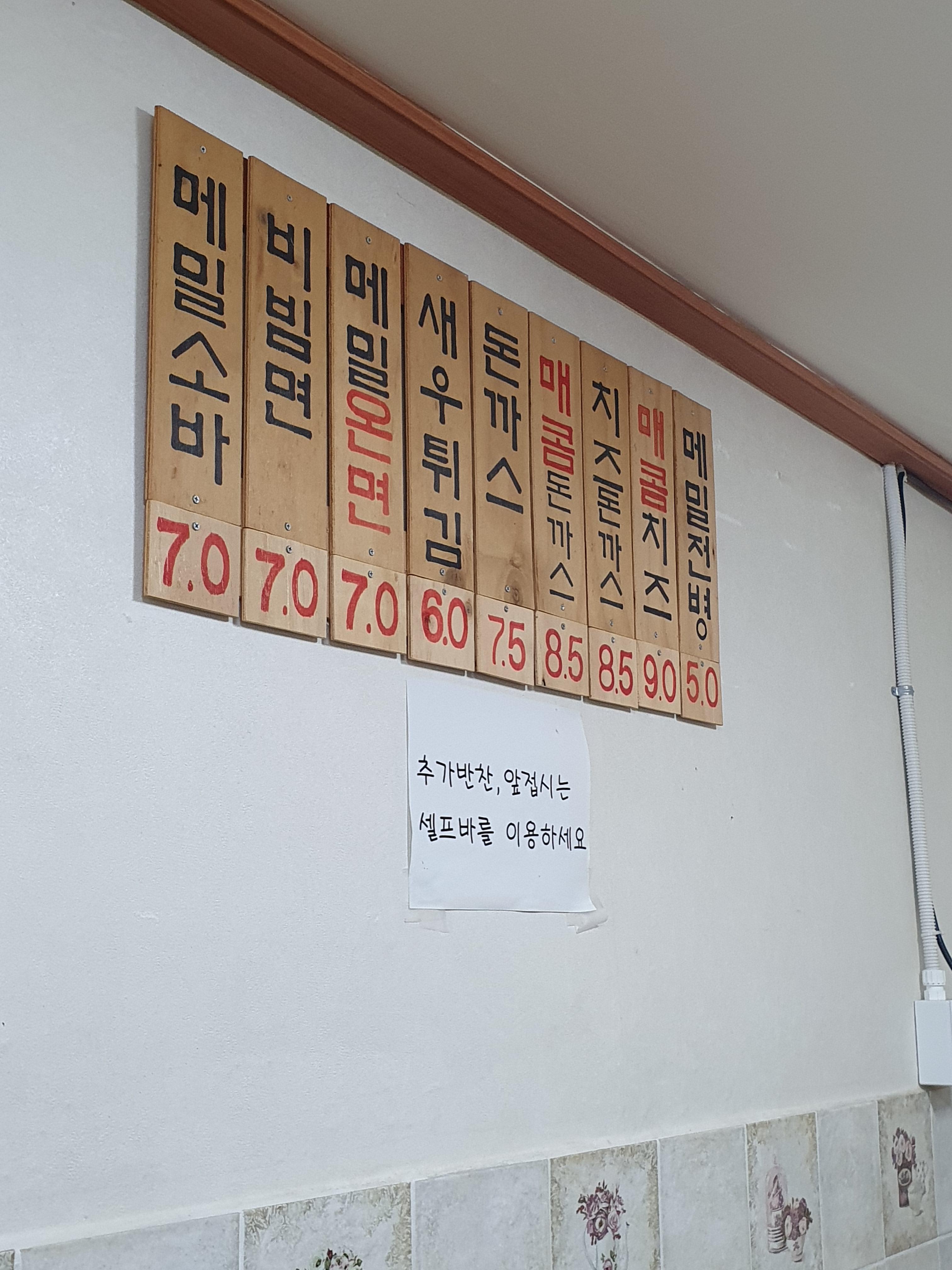 메뉴는 면류와 돈까스류 2종류입니다.