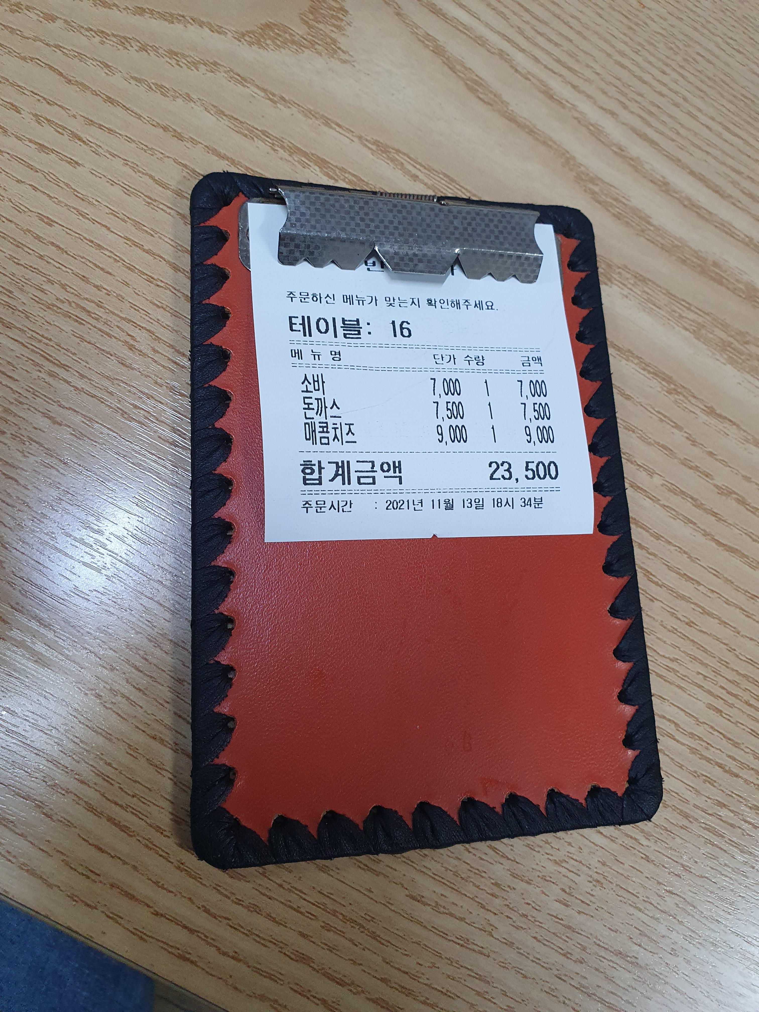 메밀소바1개, 돈까스1개, 매콤치즈돈까스1개 이렇게 시켰습니다.