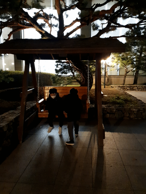 밖에나와서는 나무그네에서 신나게 놀고 있네요.