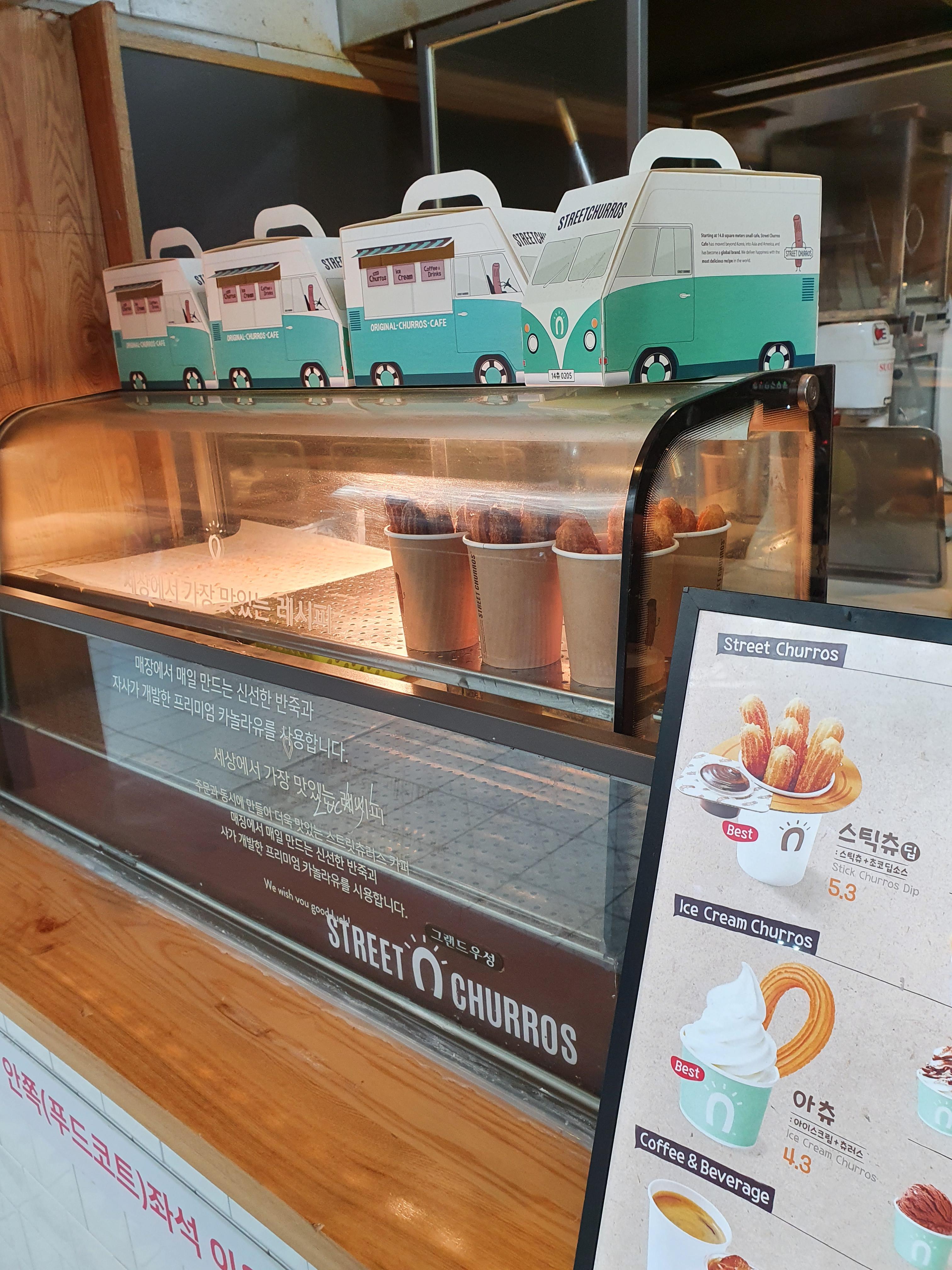 지하에 있는 위락상가에 스트릿 추러스에서 초코 추러스를 하나 사줫더니.. 세상 잘먹네요.