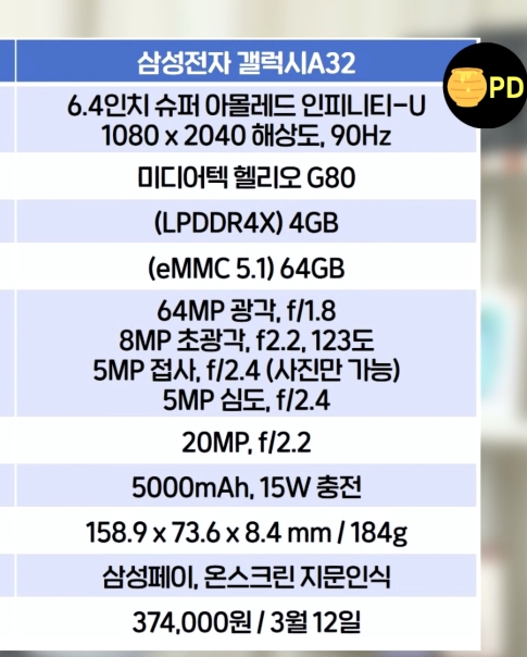 꿀단지tv에서 홍미노트랑 a32 비교 스펙을 올려놔서..