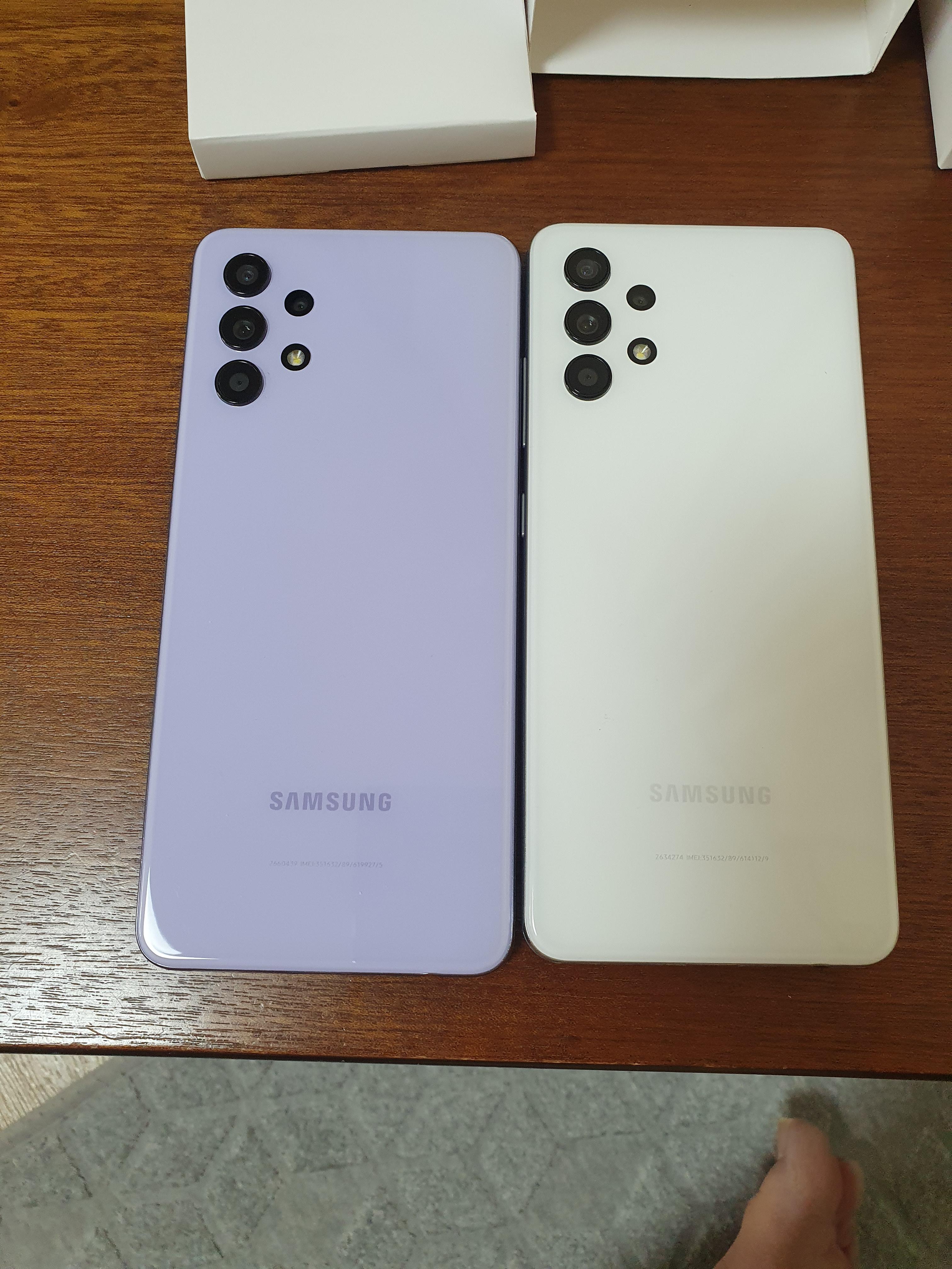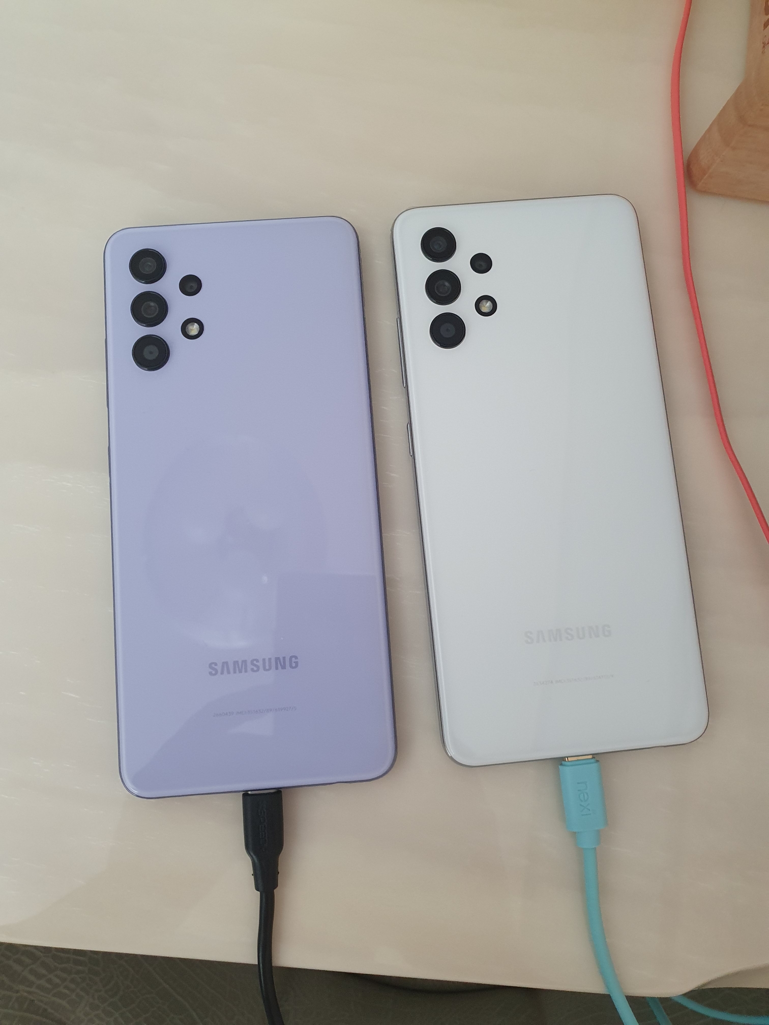 갤럭시 A32 바이올렛 vs 화이트 모델 비교샷 입니다.