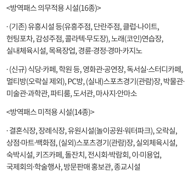 계속적으로 방역패스가 도입되는 시설이 많아지니..