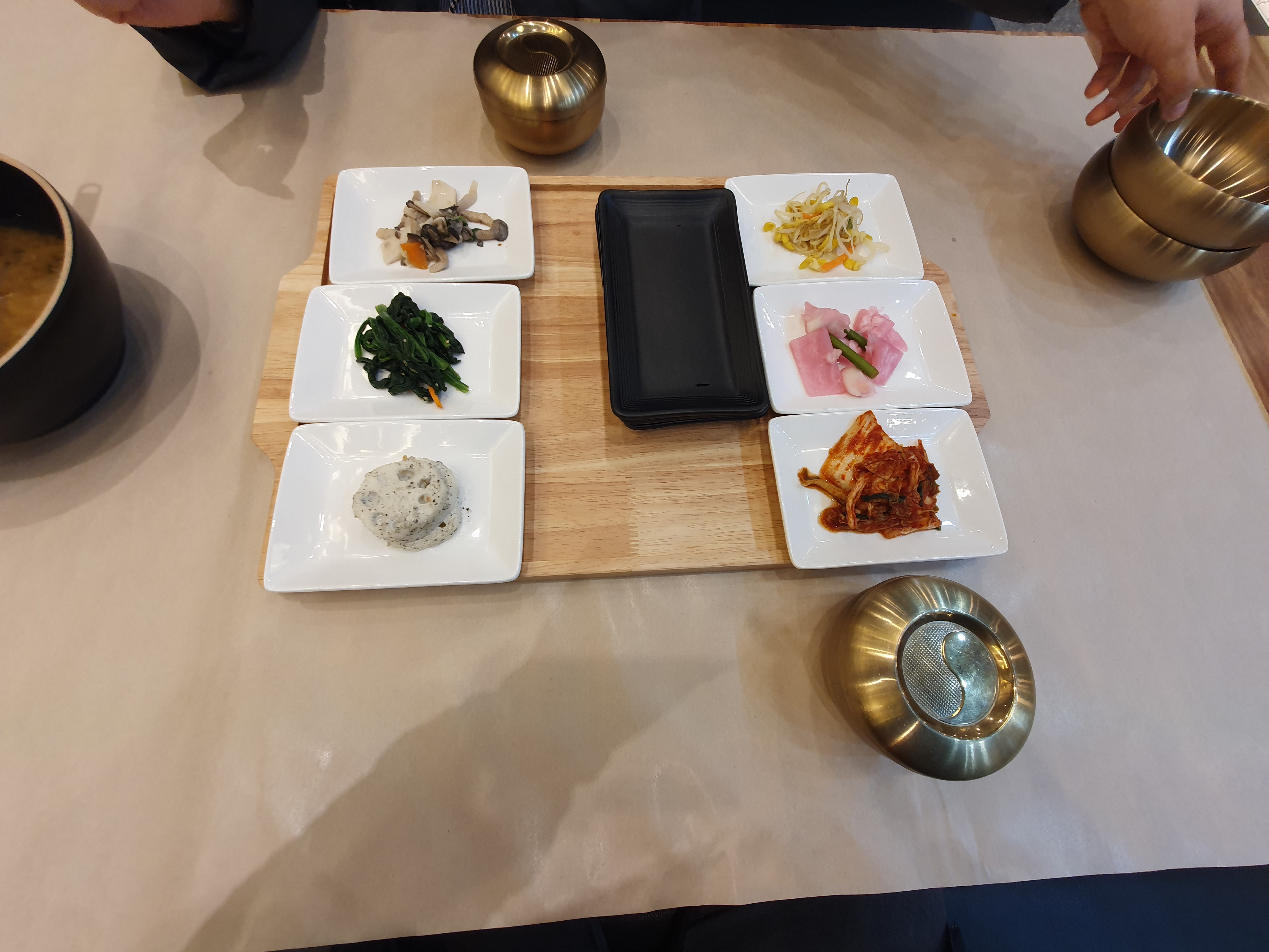 6가지 반찬이 기본찬이고, 여기에 얼갈이 배추된장국과 밥이 기본세팅됩니다.