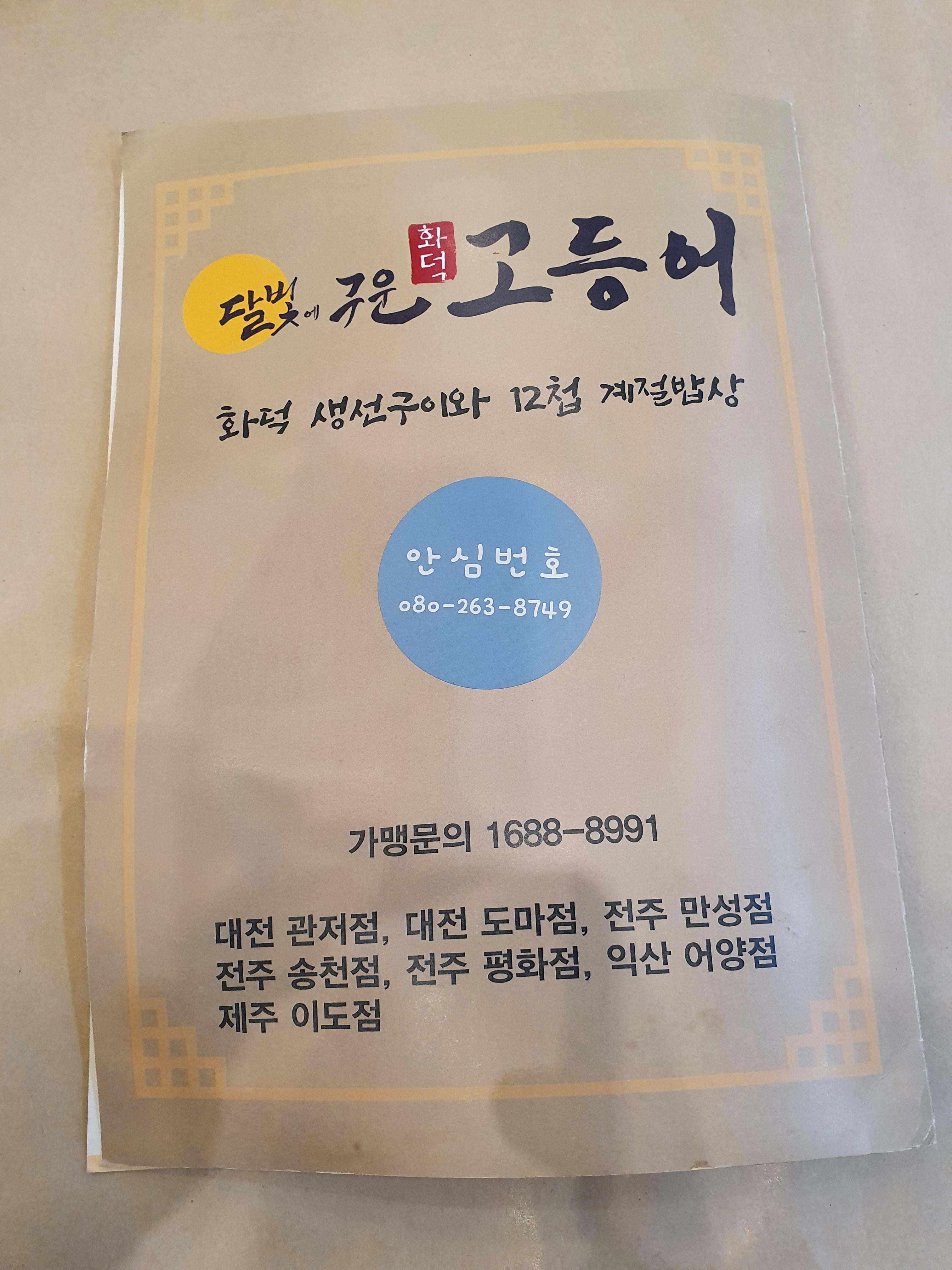 그럼 관저동 점심특선 달빛에 구운 고등어 가게 메뉴판을 볼께요!