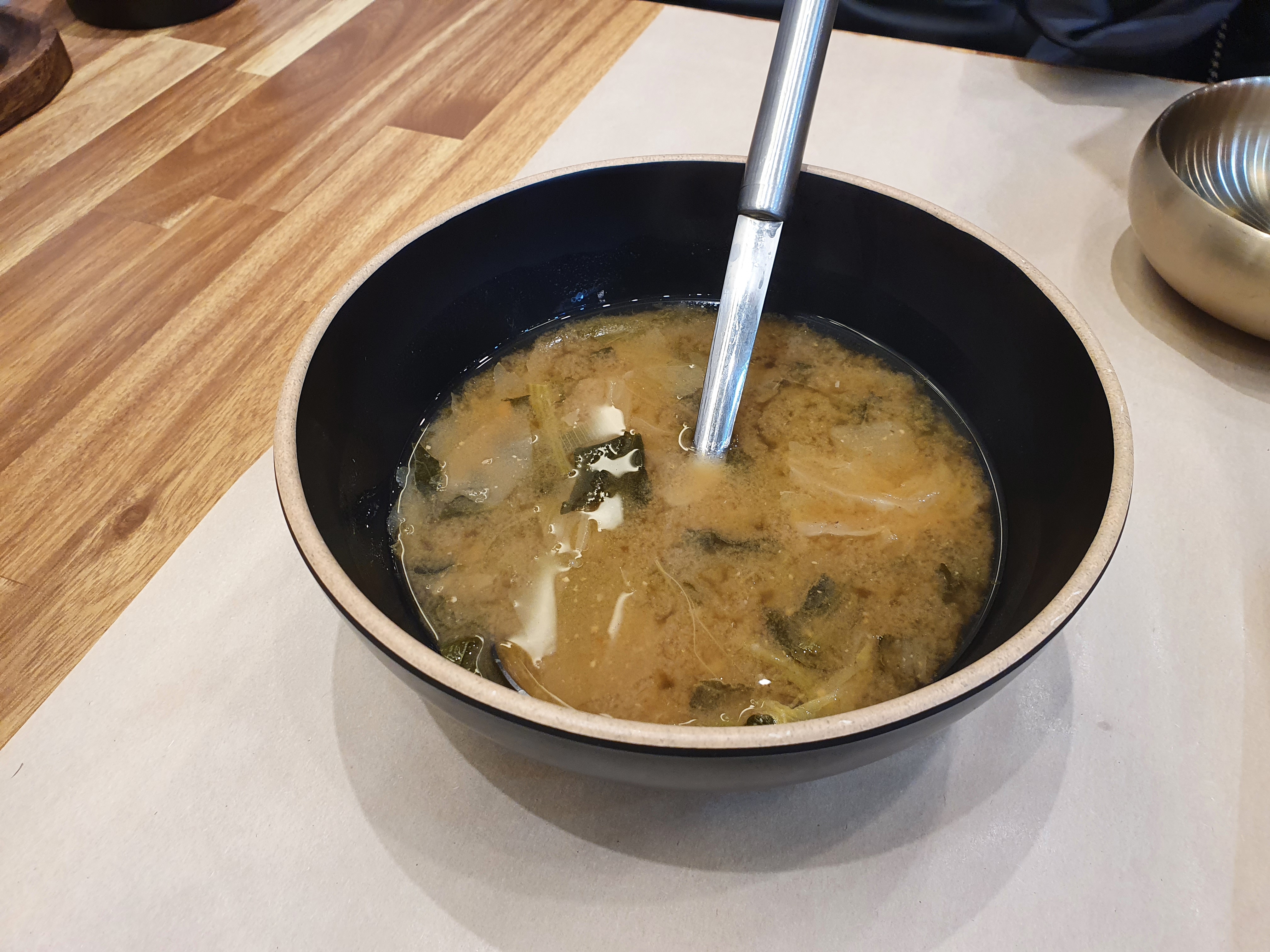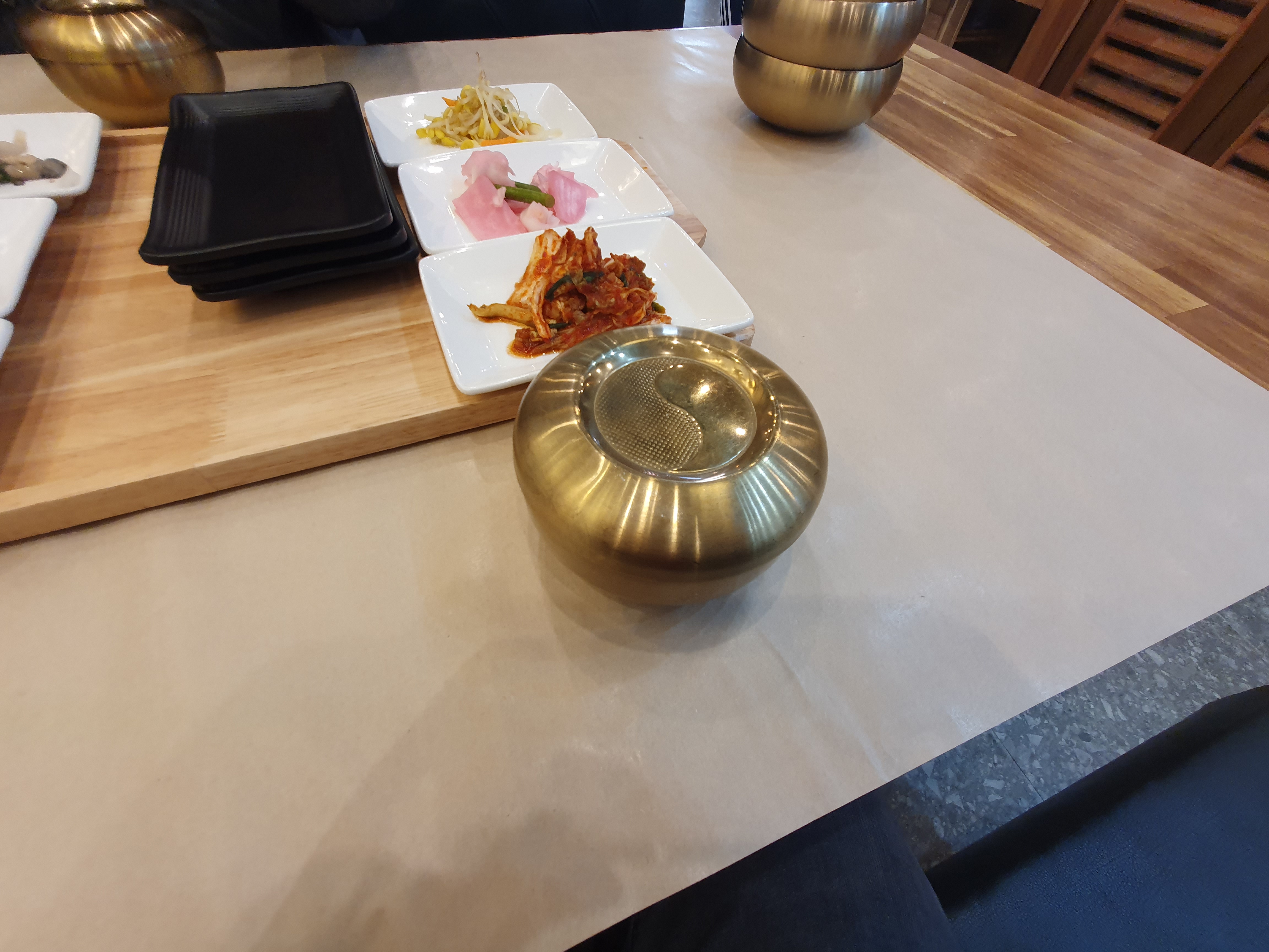 가운데 검은색 직사각형 접시는 샐러드바에서 반찬을 가져다 먹을때, 사용하면 된다고합니다.