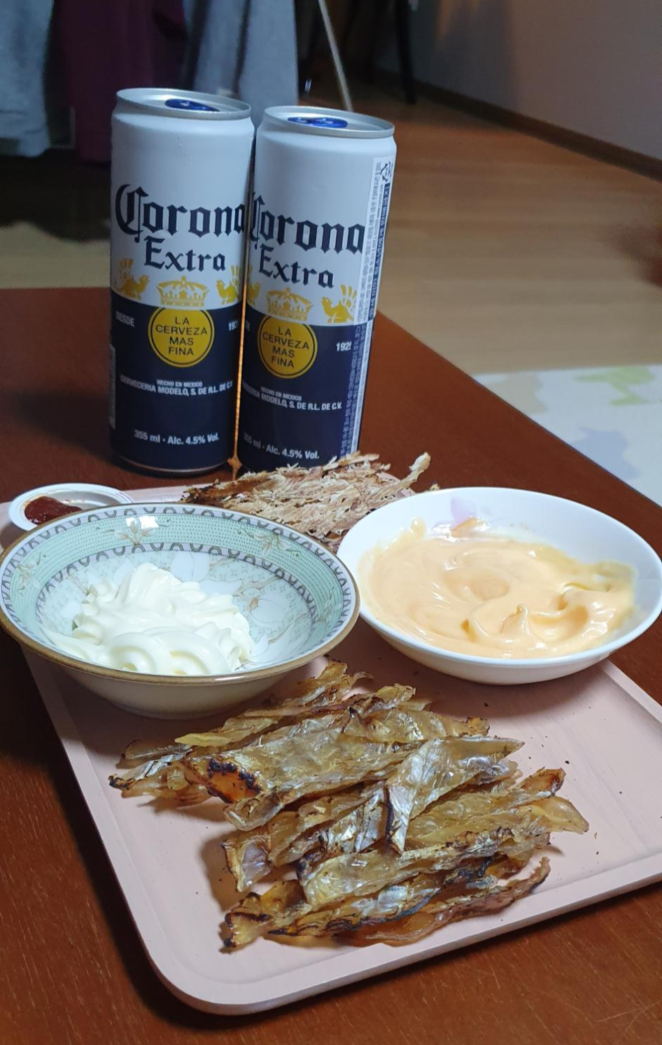 코로나와 오직어 쥐포 그리고 치즈 소스까지 3박자가 다 맞네요 ㅎㅎ