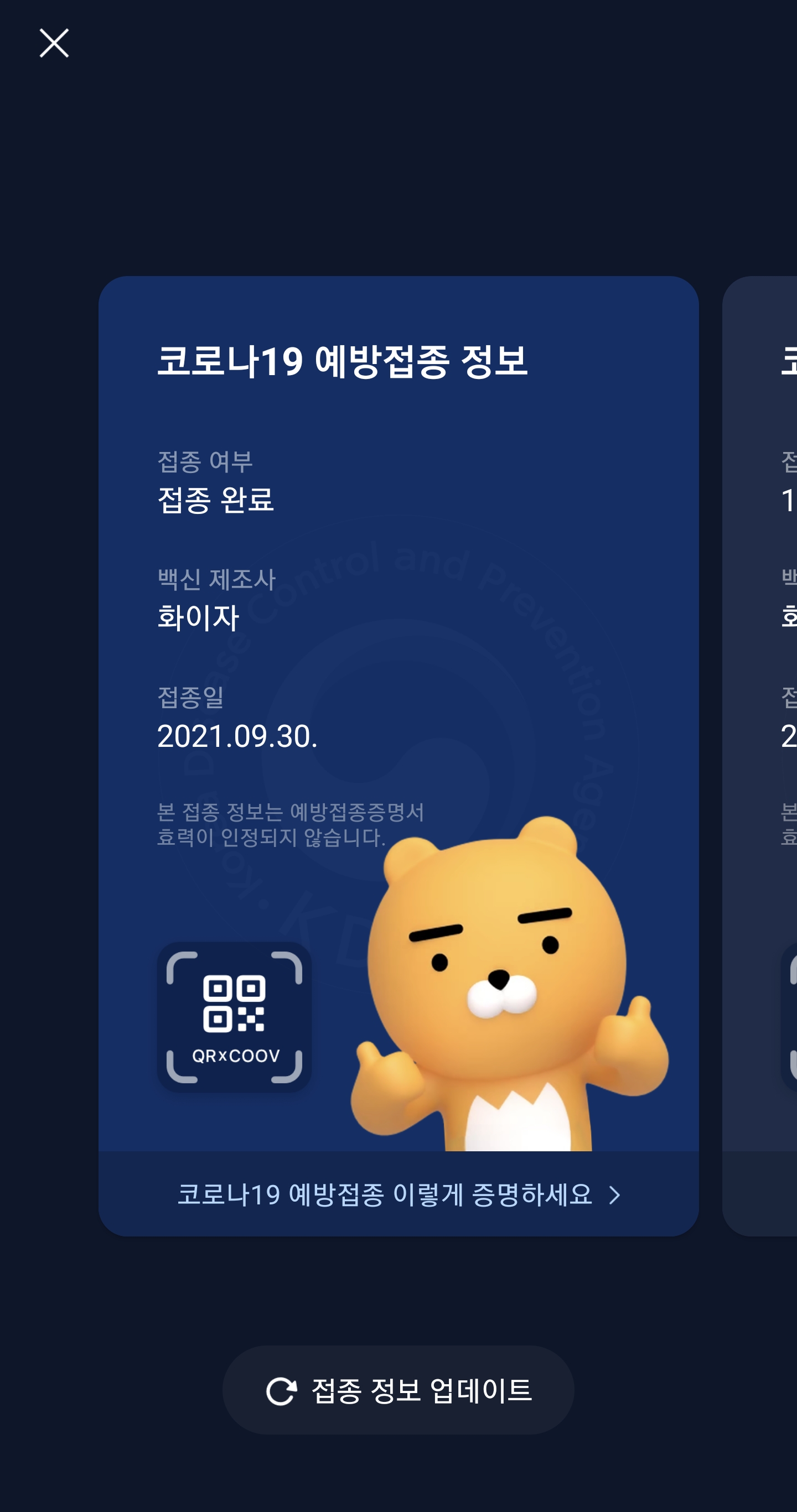 이렇게 되면, 코로나19 예방접종 증명을 하실수 있습니다.