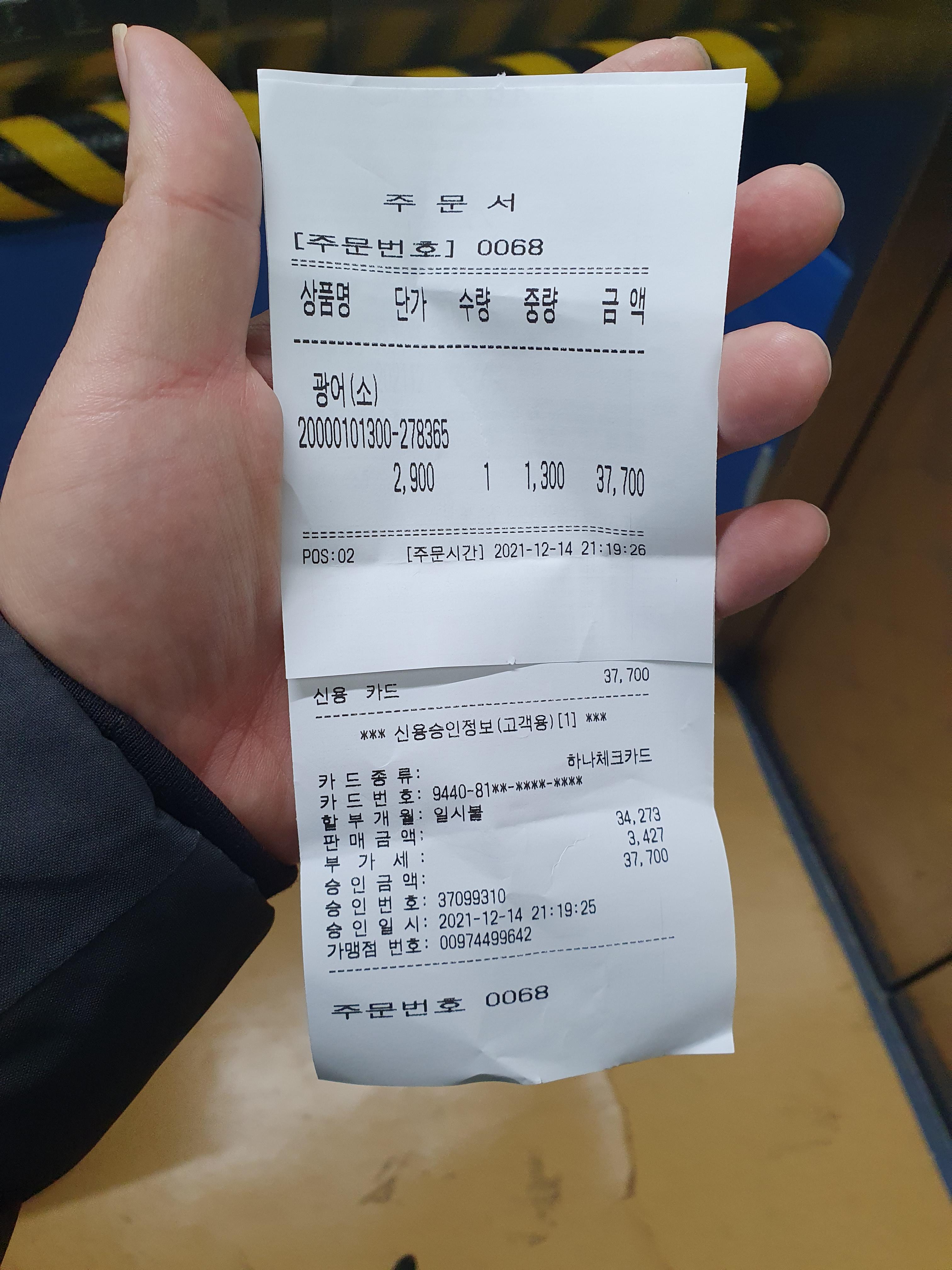 저는 1300g 소광어를 선택하고 결제하였습니다.