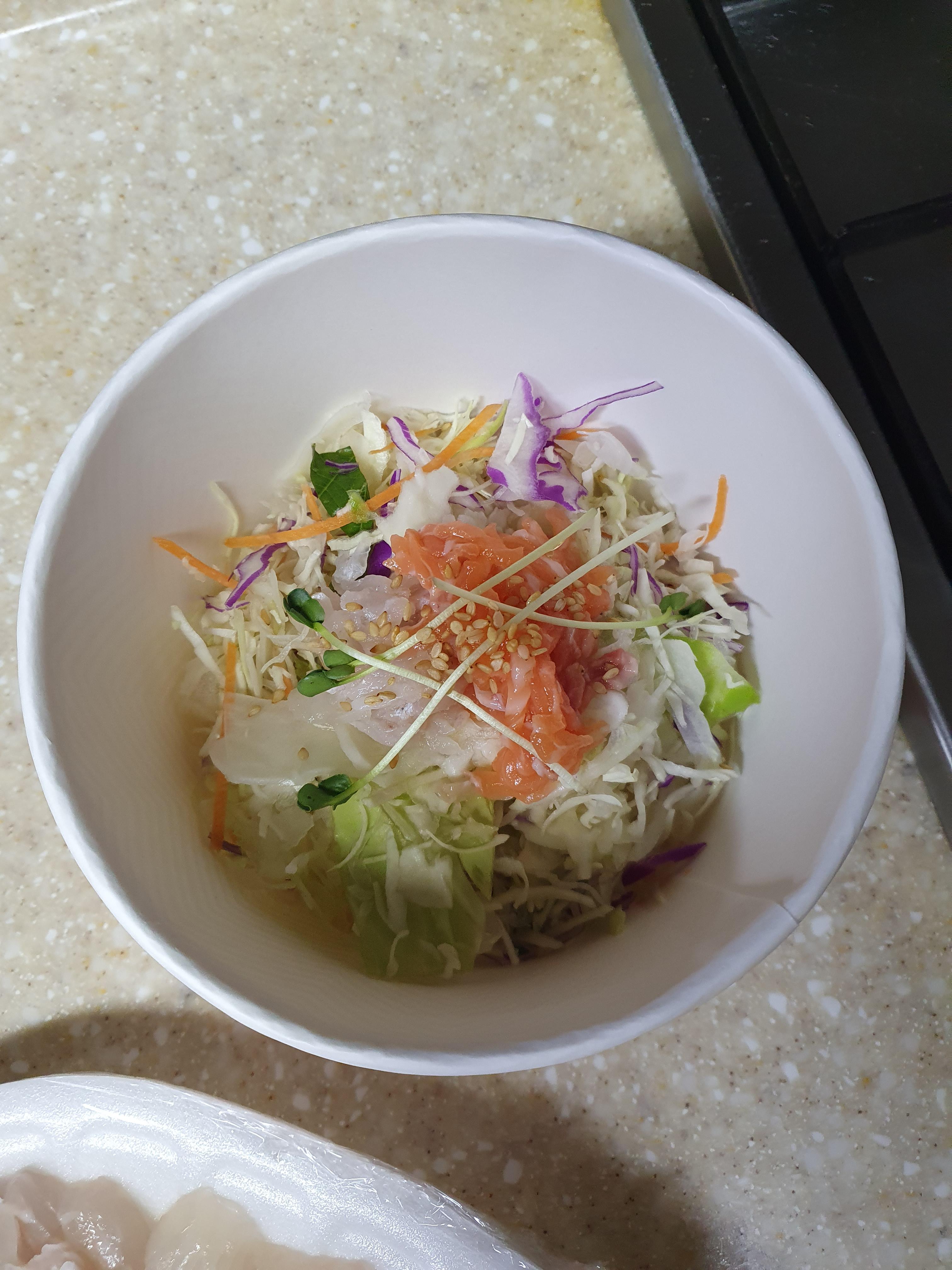 이런 밥용기에 회와 야채를 넣어 주셨습니다.