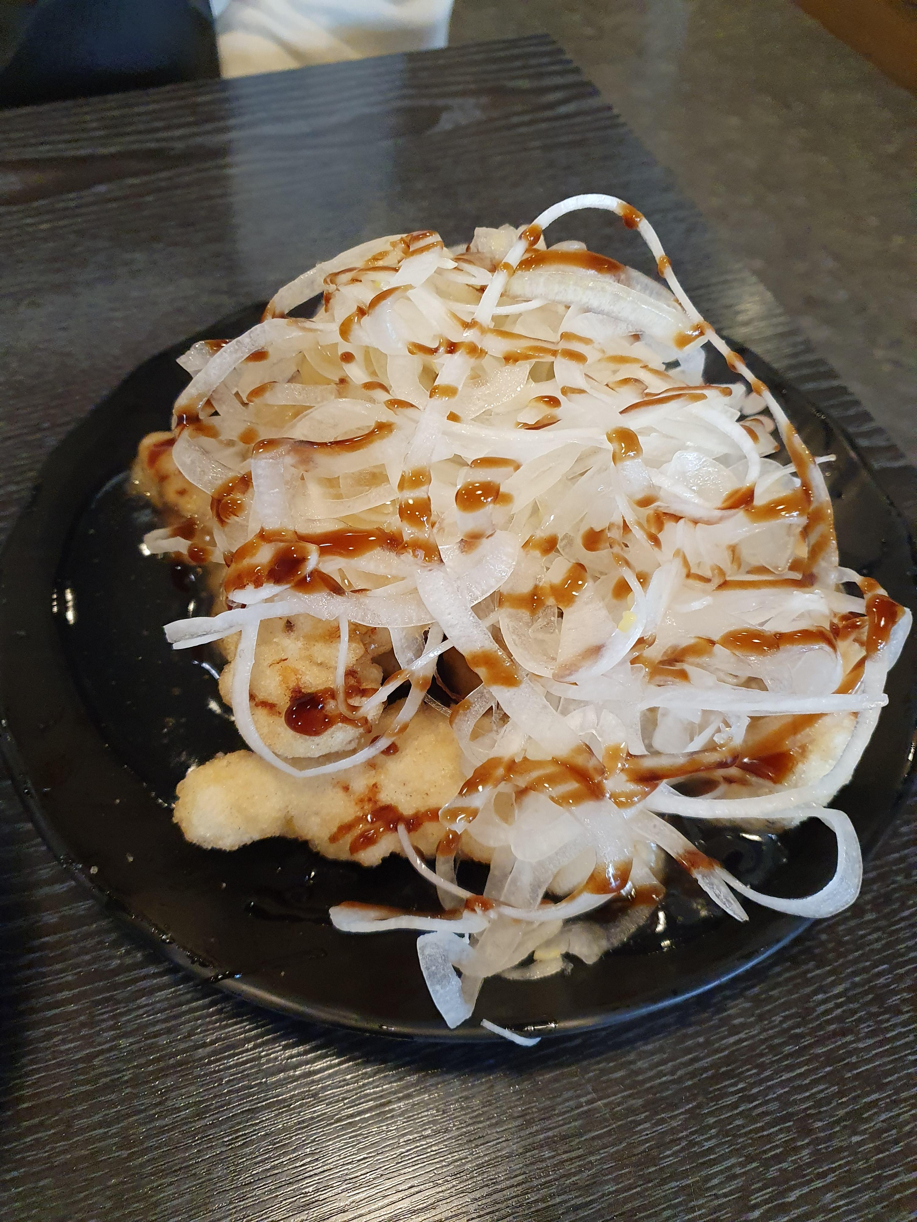 특이 한건 양파가 위에 올라가 있습니다.