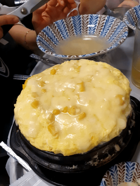 15분 뒤에 도착한 치즈+옥수수 폭탄계란찜등장하였습니다.