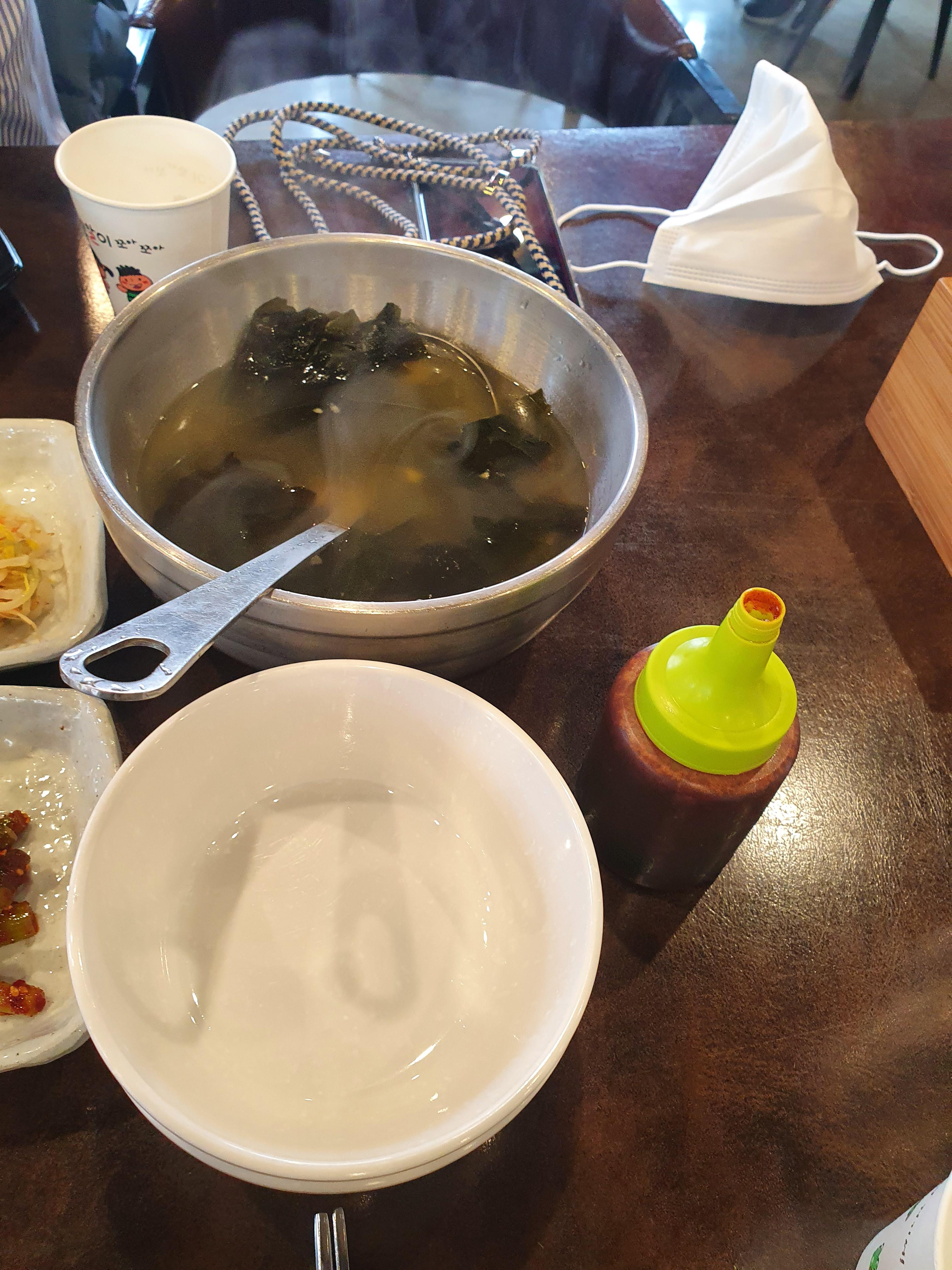 깔끔한 반찬과 시원하고 뜨끈한 건새우 미역국을 같이 먹으니