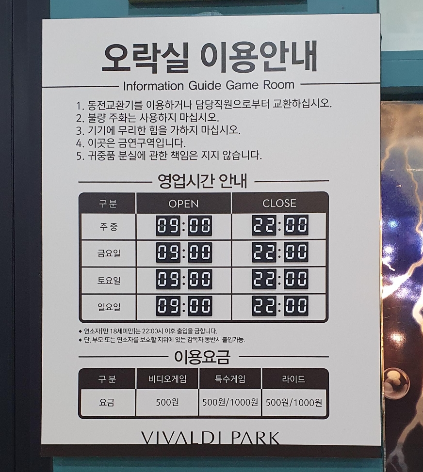 여기 비발디파크 노래방 이용요금은