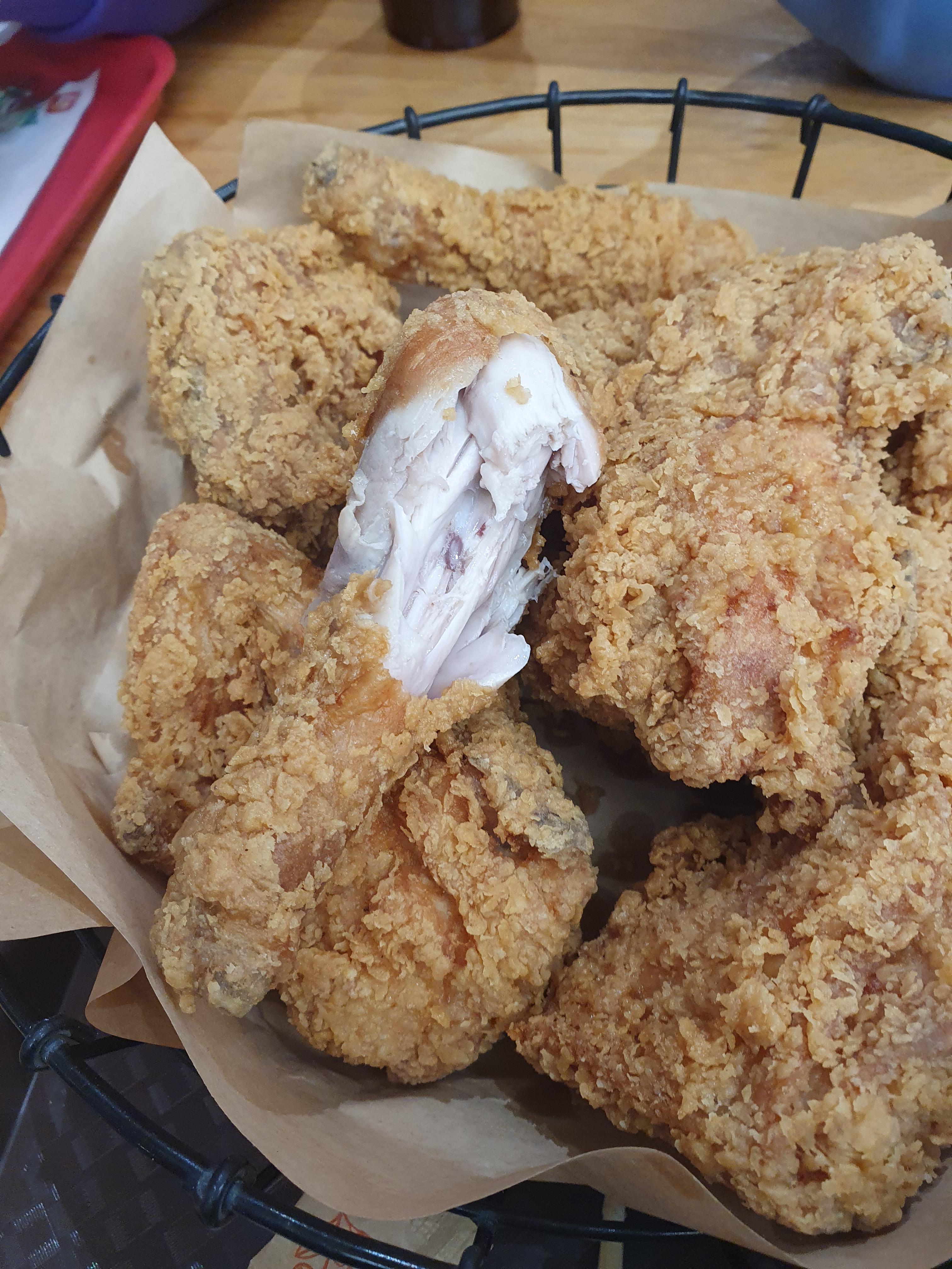 바로 튀긴 치킨이라서