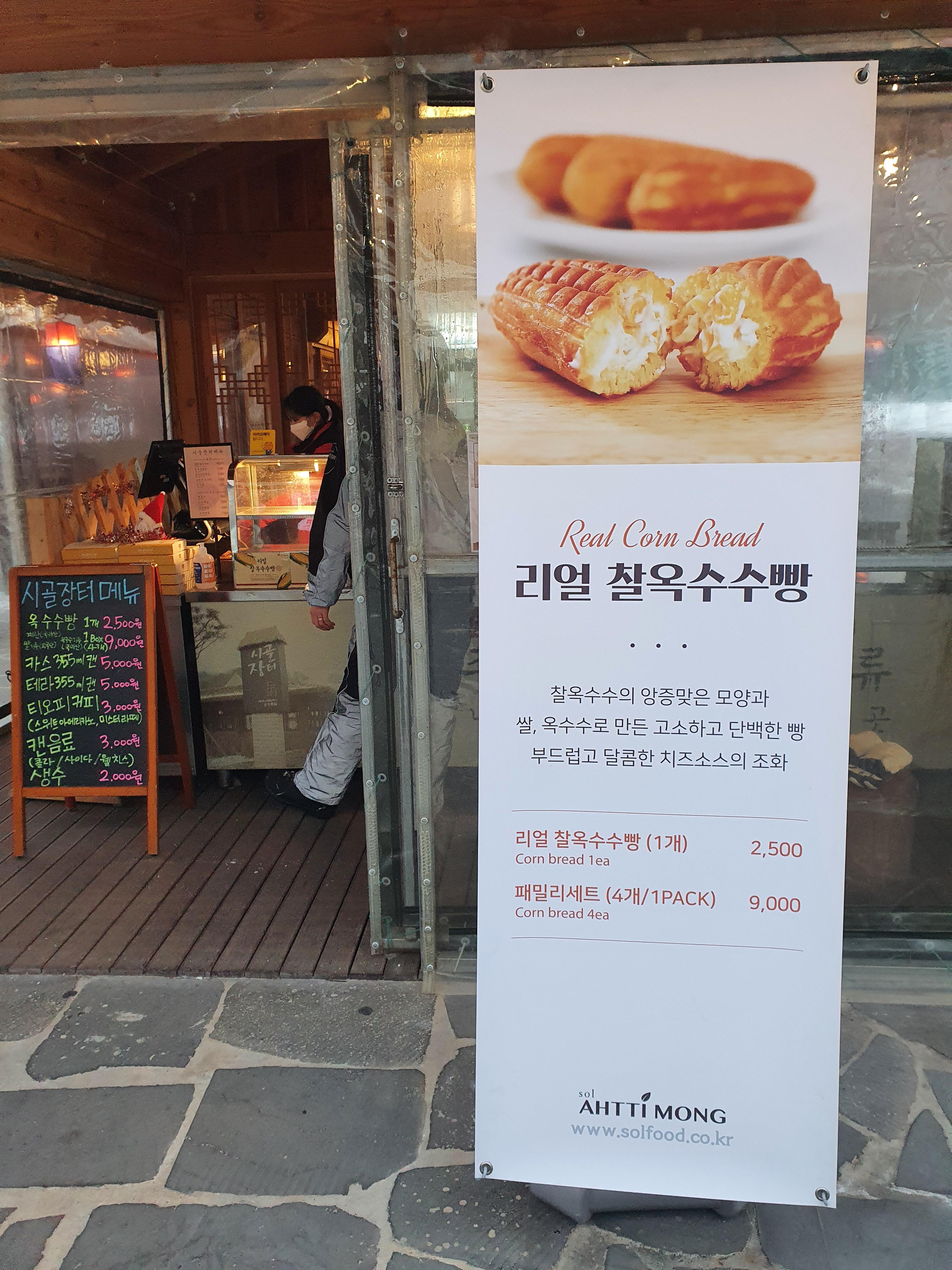 옥수수빵이나 사달라고 해서 비발디 슬로프 앞에 있는 시골장터에서