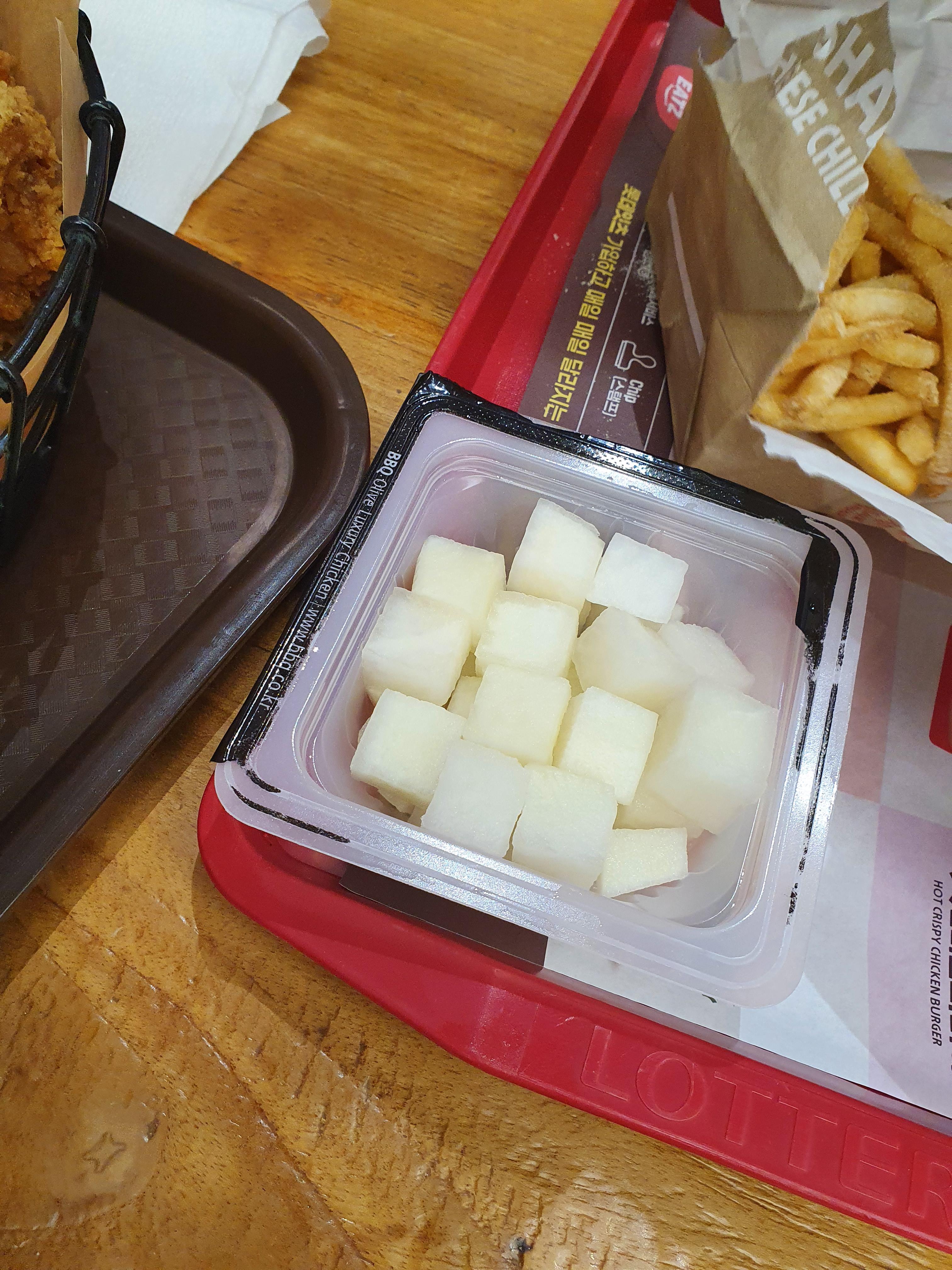 바로 옆에 롯데리아가 있어서 감튀는 롯데리아에서 시켜줬고,