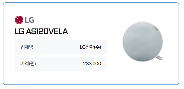 3등 공기청정기는 엘지공기청정기 LG AS120VELA 233,000원