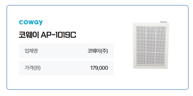 1등 공기청정기는 코웨이공기청정기 코웨이 AP-1019C 179,000원