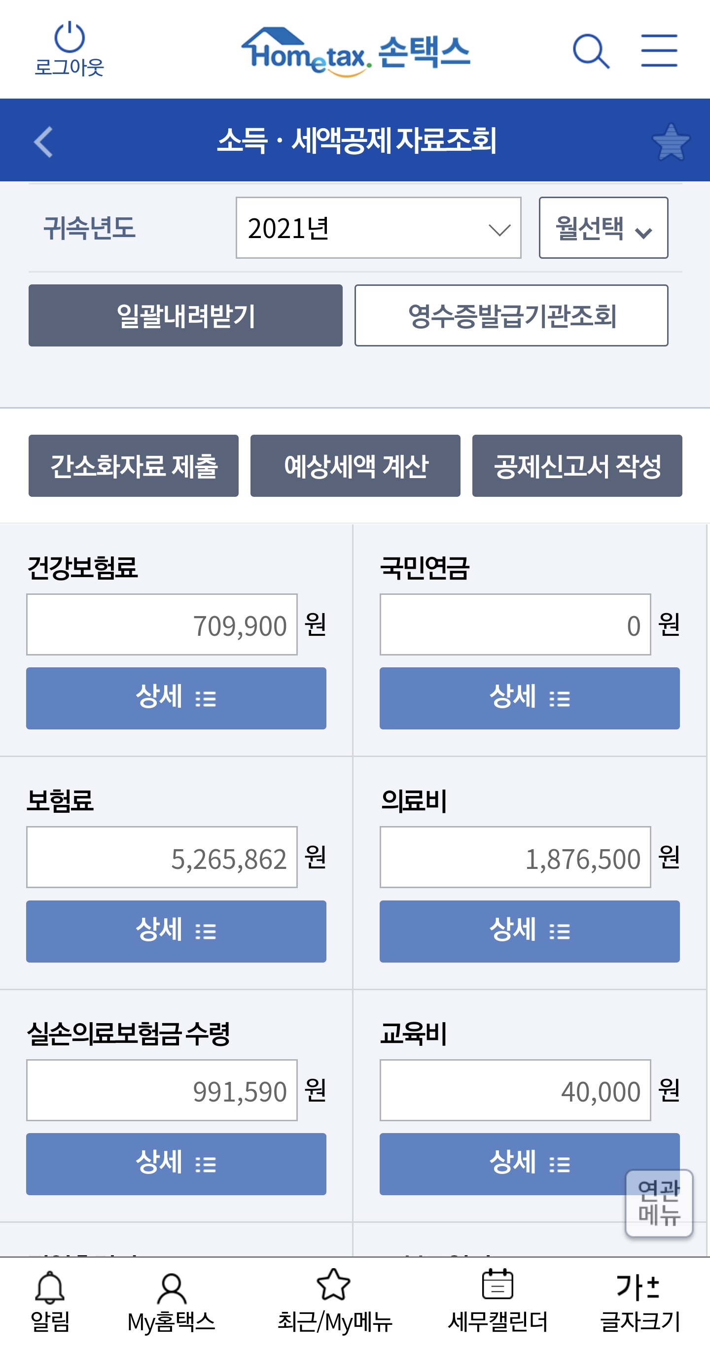 지금은 휴대폰의 손택스에서도 자료를 다운 받을수 있어서 정말 편해졌습니다.