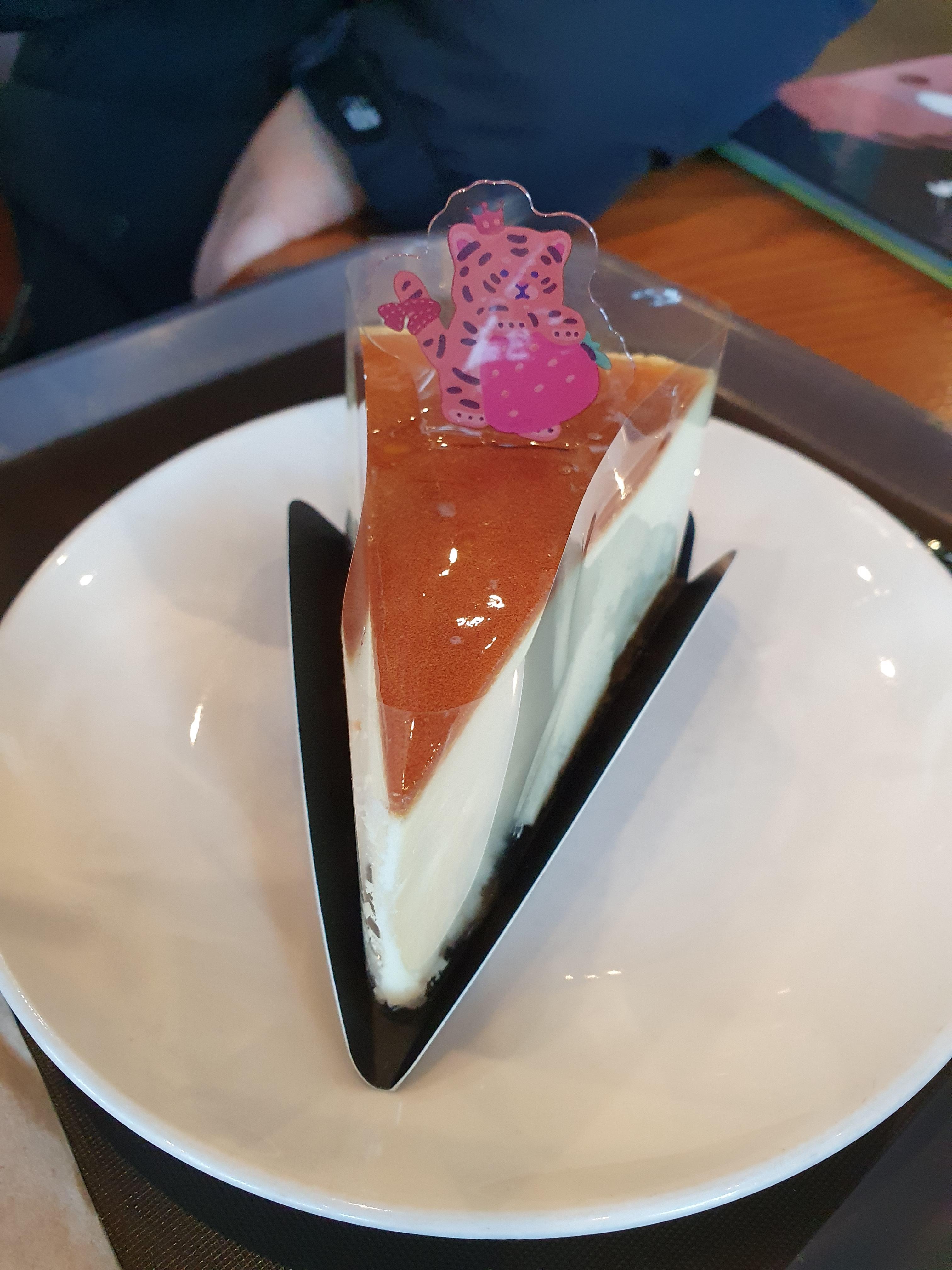 아이들이 먹을 애플망고 스무디 1잔, 치즈케이크 1조각 시켰습니다.