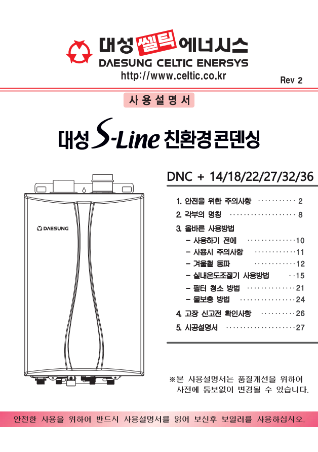 대성DNC보일러 메뉴얼입니다.