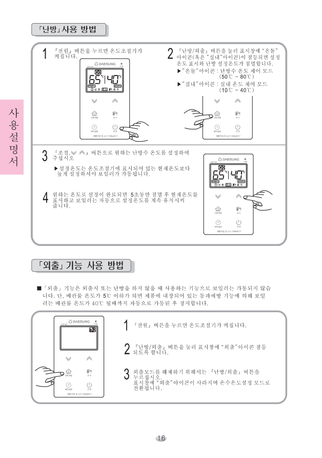 대성보일러 메뉴얼입니다.