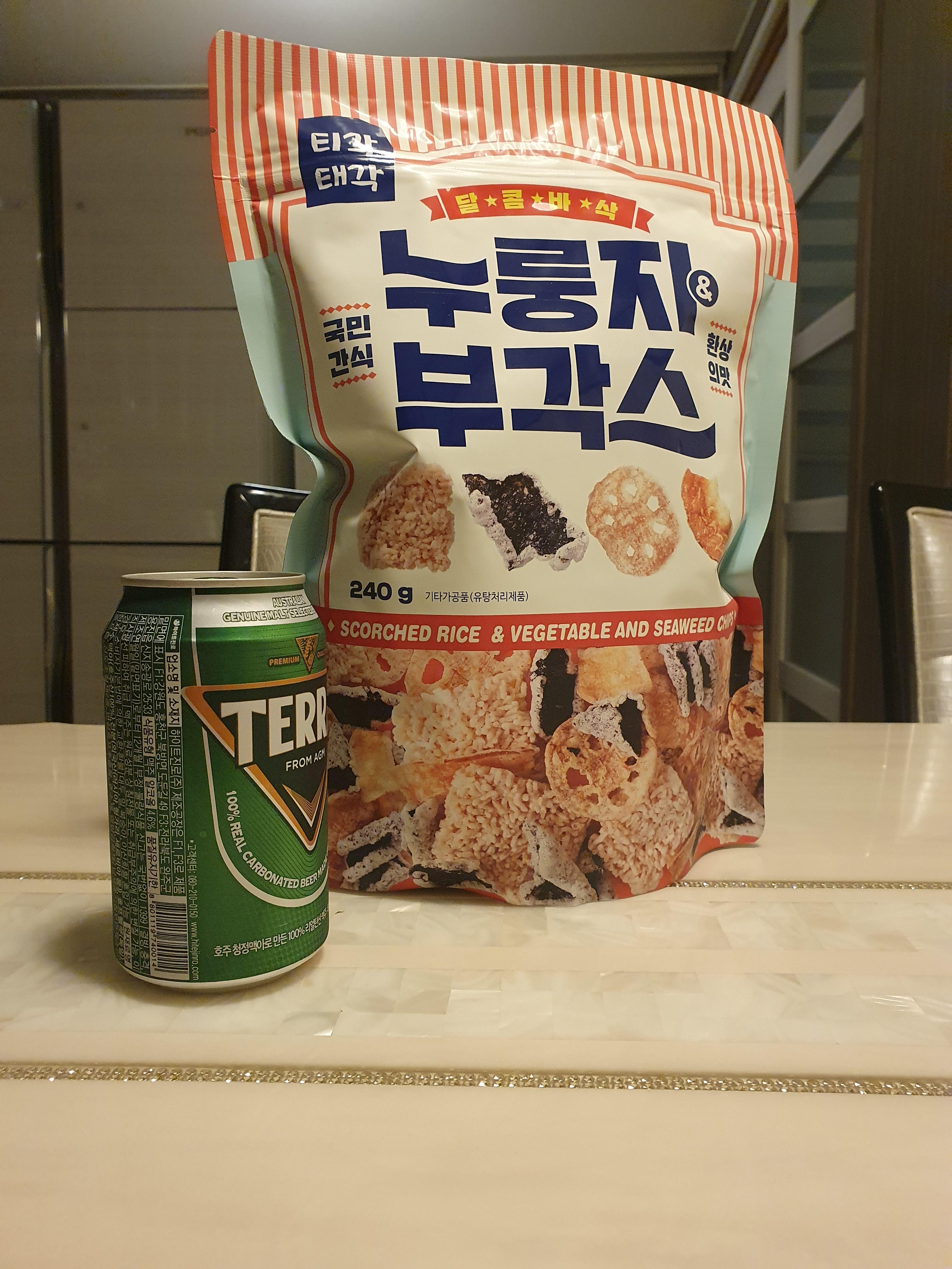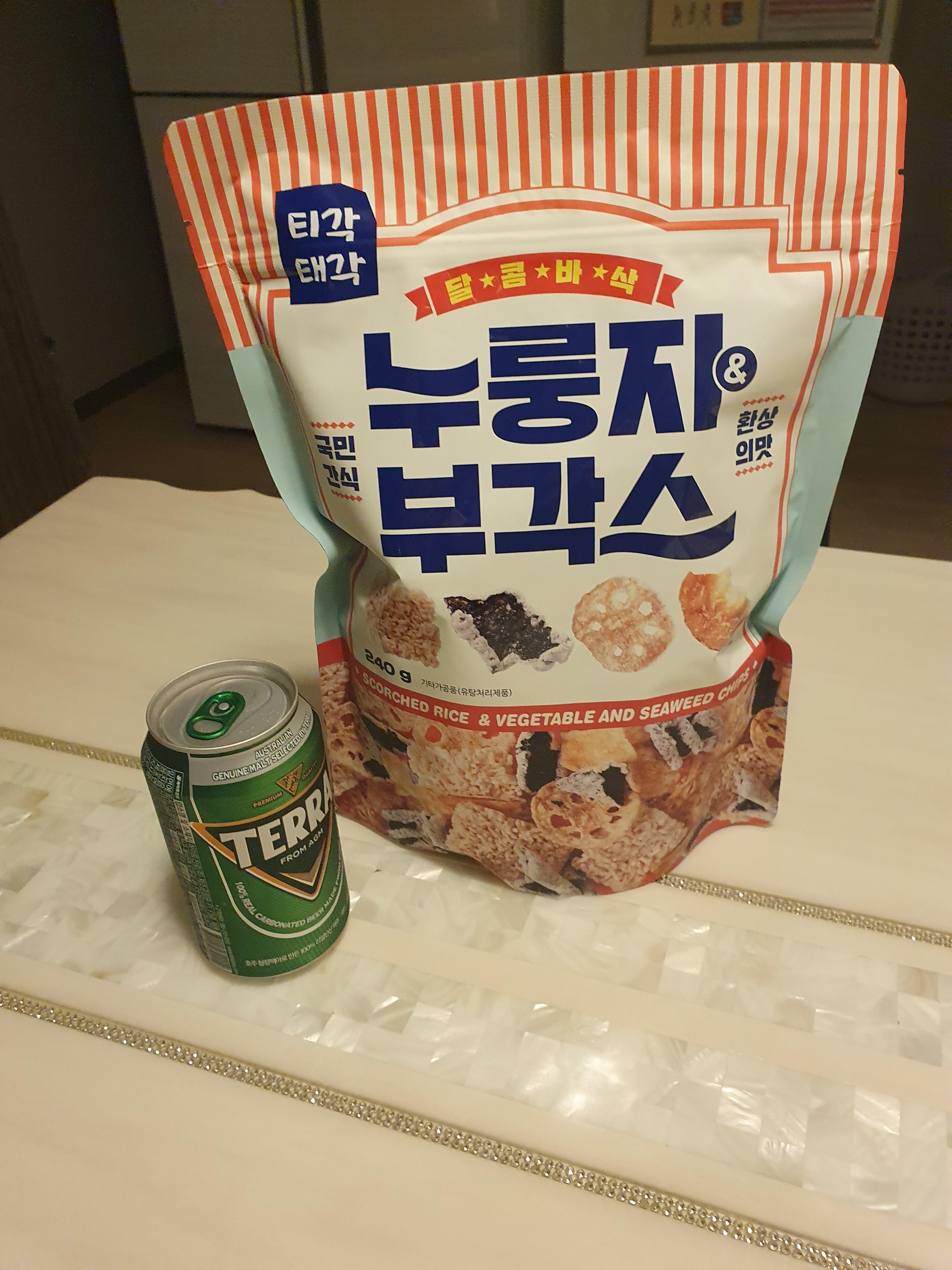 이제 오늘 밤 맥주는 누룽지부각스와 함께 하려합니다.