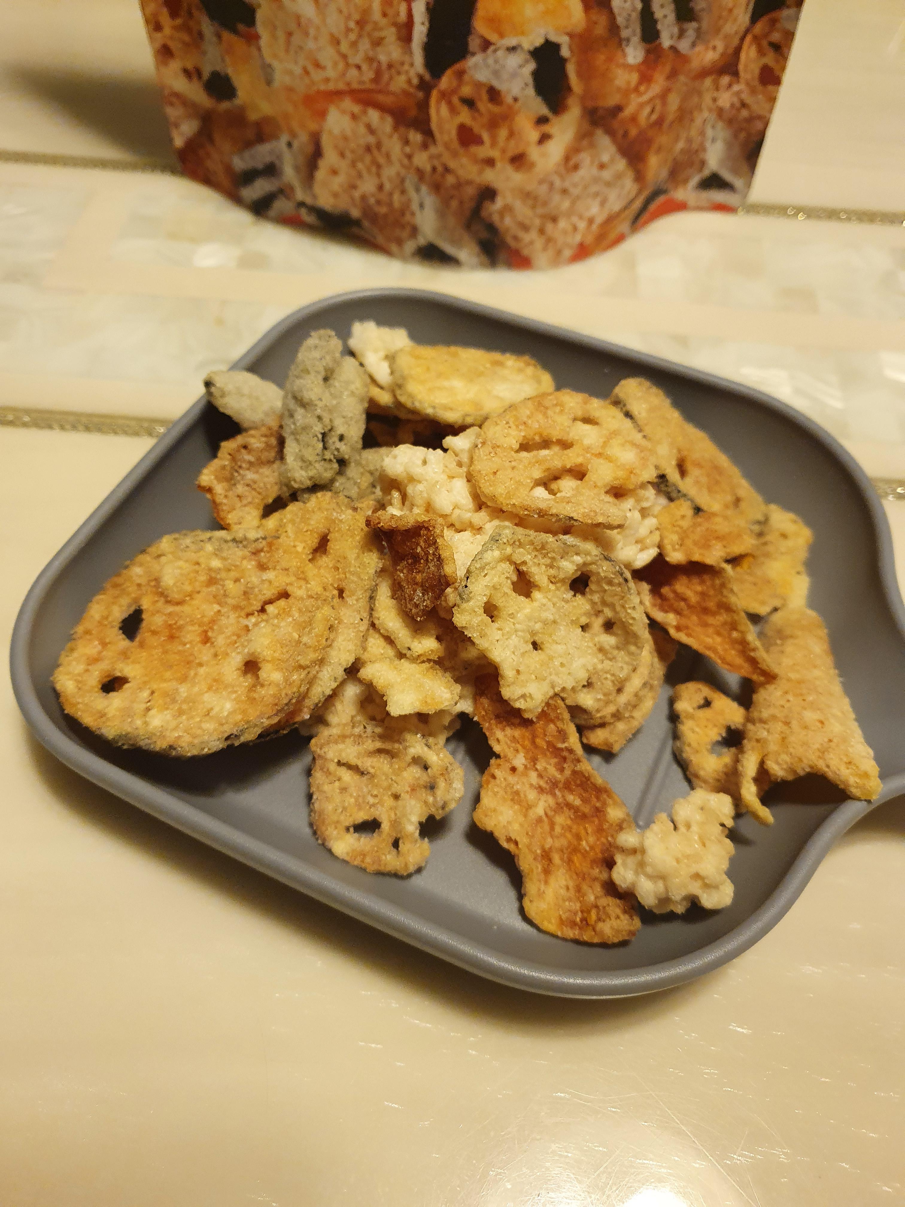 김, 누룽지, 호박, 연근 부각을 한봉지에 전부 다 담아서 어렸을때 먹었던