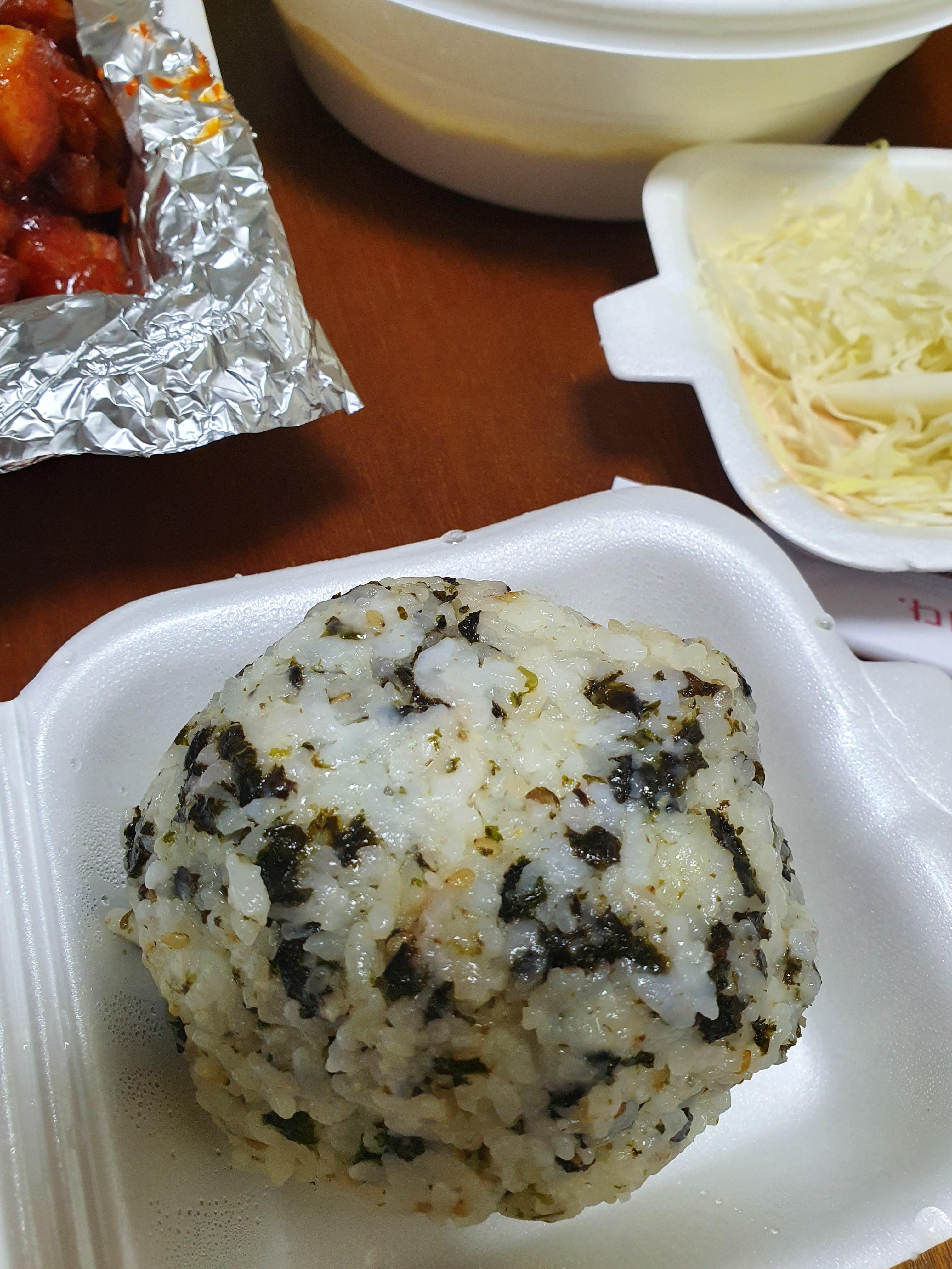 순살불닭 세트1개랑 주먹밥 4개 입니다.