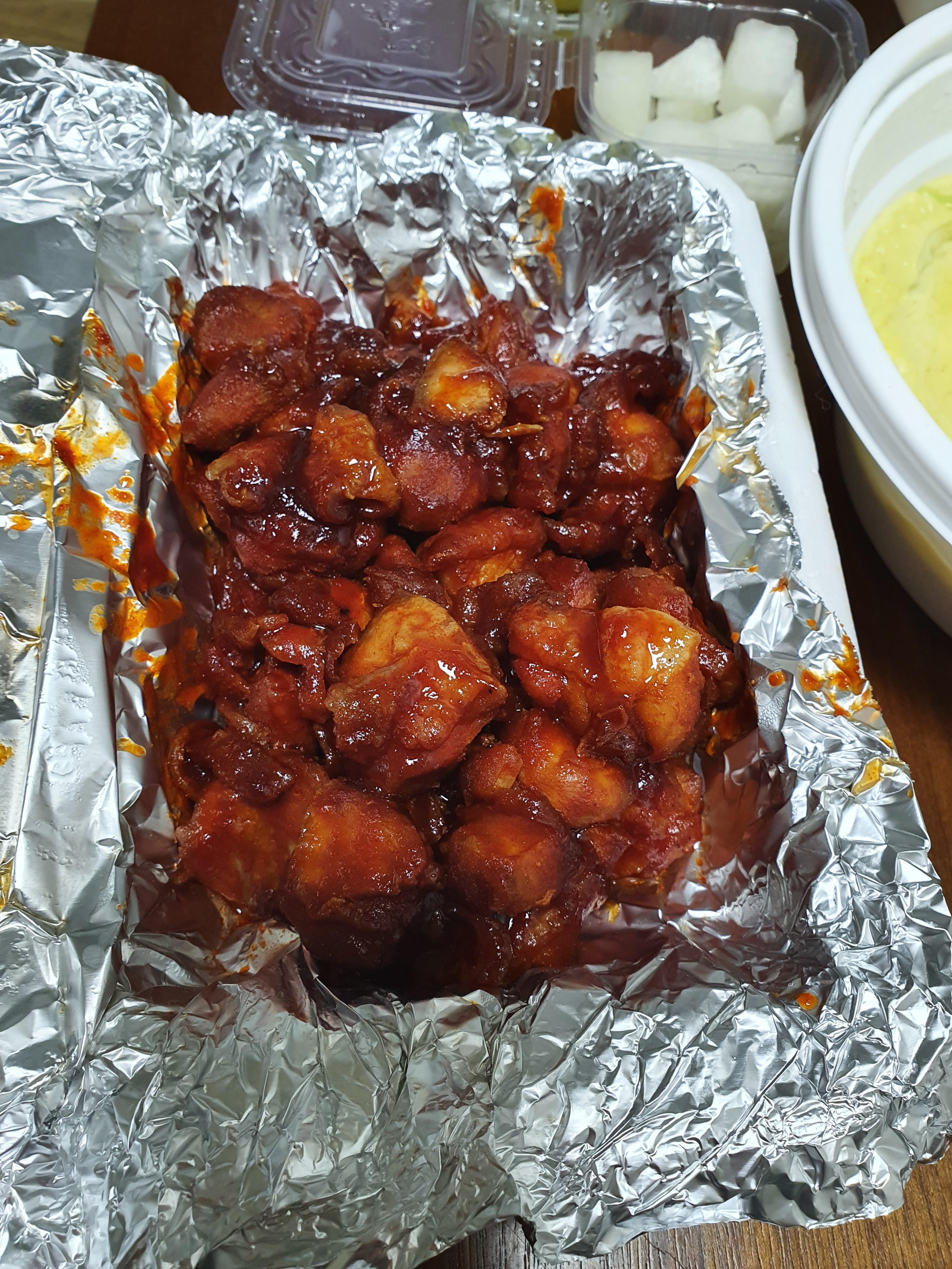 불닭 세트에 들어간 불닭은 적당하게 맵고 맛이 좋아요.