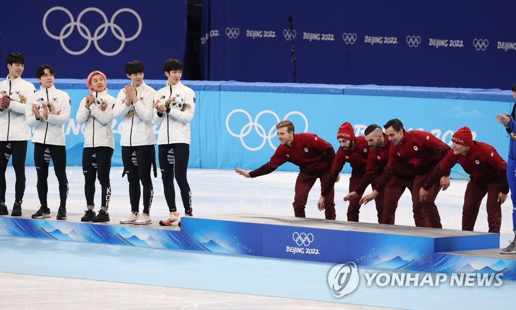 베이징 올림픽 남자 5000m 계주에서 캐나다 대표팀이 금메달을 차지했습니다.
