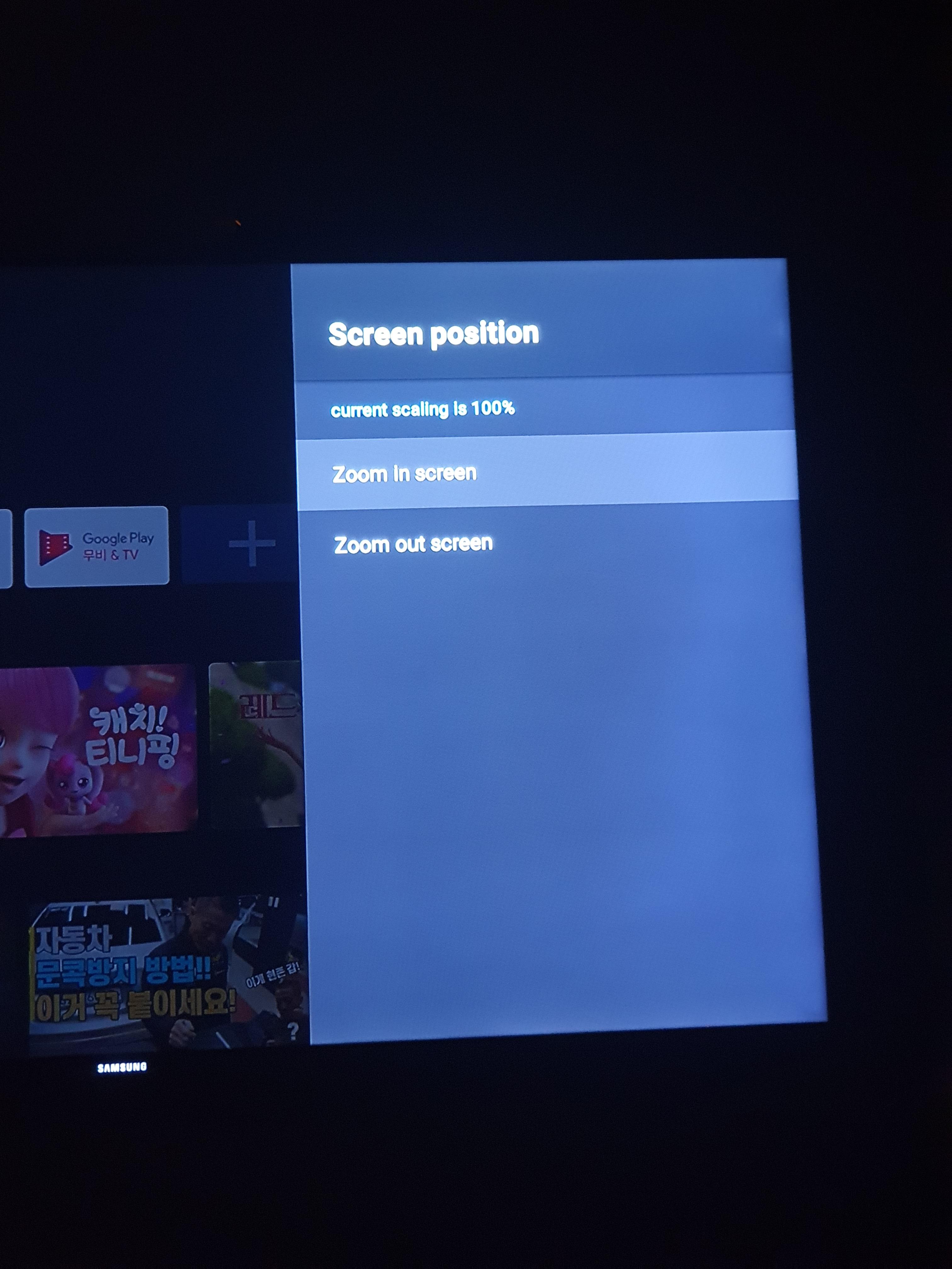 :이것은 티비에 보이는화면을 꽉차게 할껀지 아니면 조금은 작게 할껀지 선택하는 메뉴입니다.