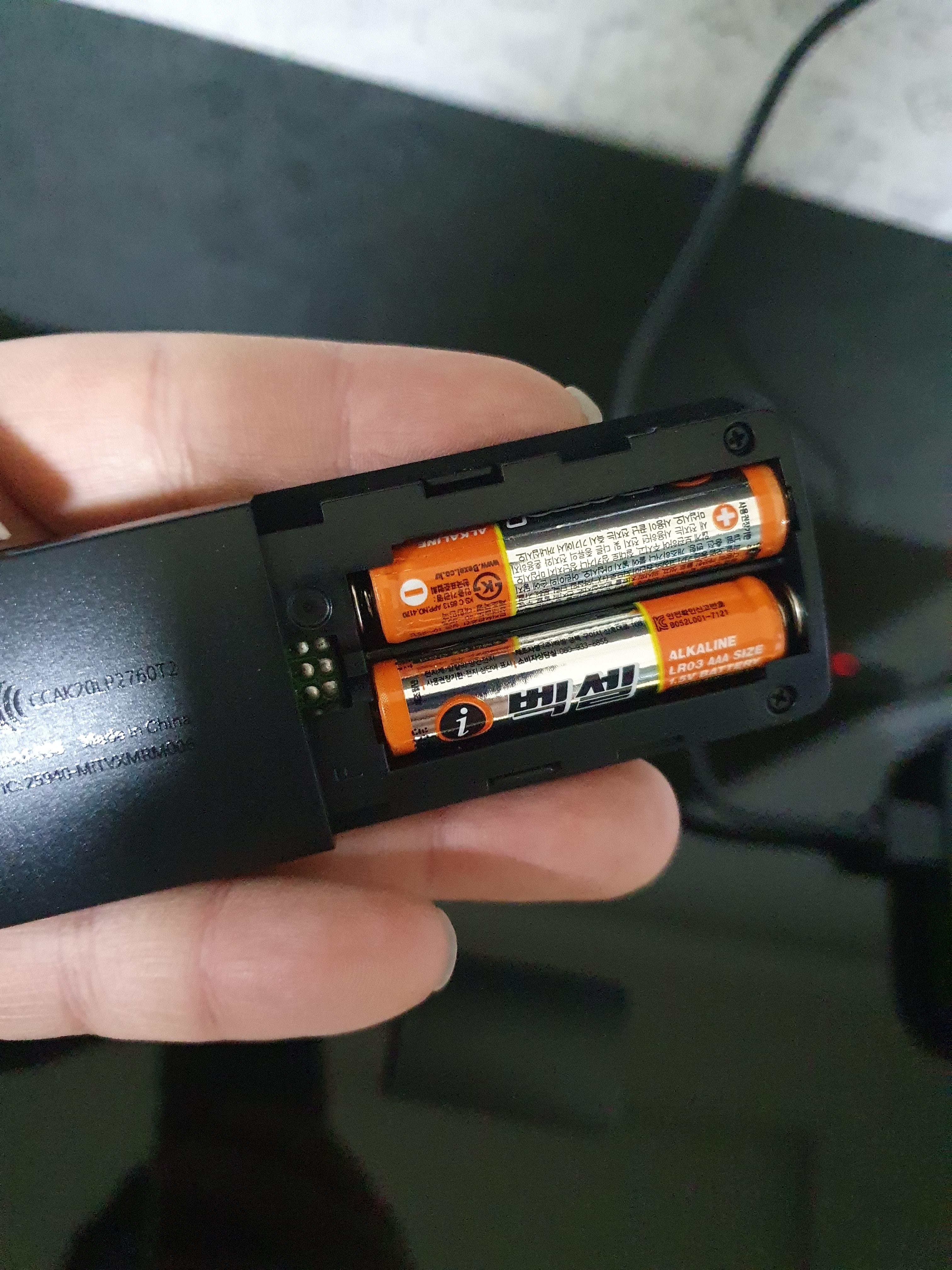 집에 굴러 다니는 aaa건전지 2개를 넣어 줍니다.