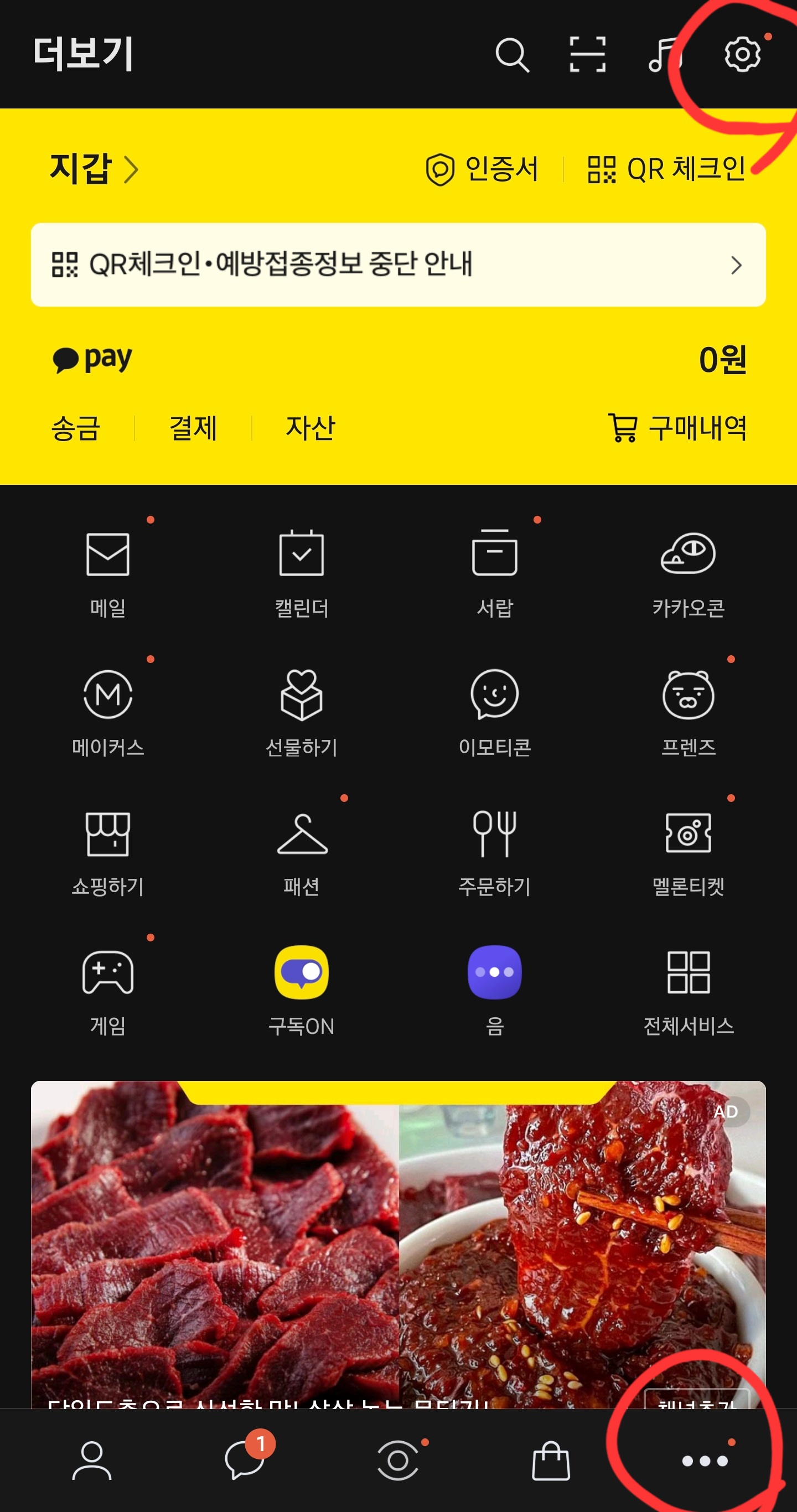 2. 맨 오른쪽 하단에 위치한 점3개를 선택합니다.