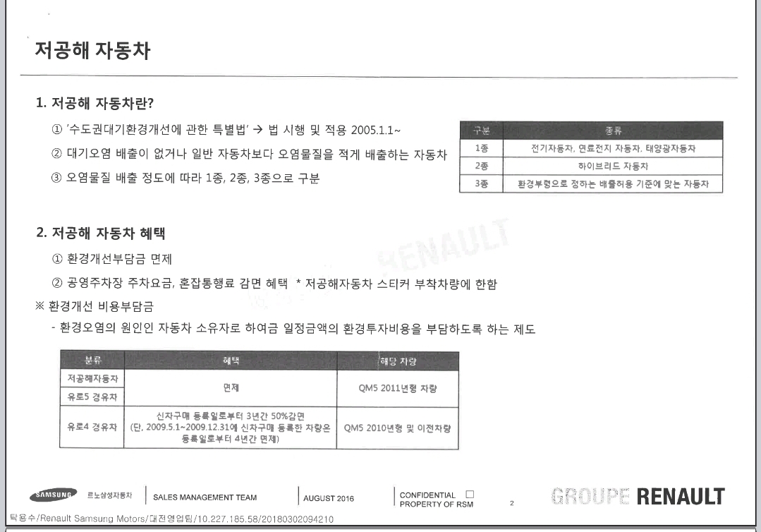 그럼 르노삼성에서 어떤 차량이 저공해 차량인지 알아볼까요?